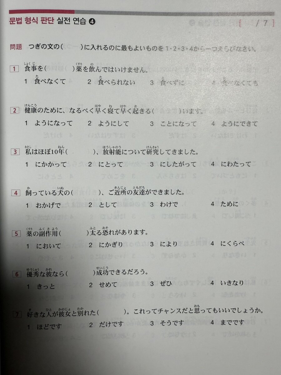 2교시는 문법 파트로, 시험에서 자주 출제되는 문법 사항을 체계적으로 정리하고 있다. 문법 항목은 조사, 동사의 て형과 た형, 동사 사전형 등에 따라 구분되어 있으며, 학습자들이 보다 쉽게 이해할 수 있도록 구성되었다. 또한, 경어, 부사, 접속사와 같은 필수 문법도 포함되어 있어 실전에서 놓치기 쉬운 부분까지 대비할 수 있다. 각 문법 항목 뒤에는 확인 문제를 배치하여 반복 학습이 가능하도록 하였다. 이 책에서는 문법을 나열만 하는 것이 아니라, 예문과 함께 학습할 수 있도록 구성하여 실생활에서도 활용할 수 있도록 돕는다.