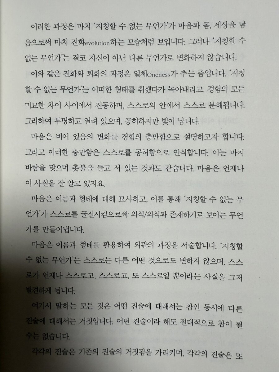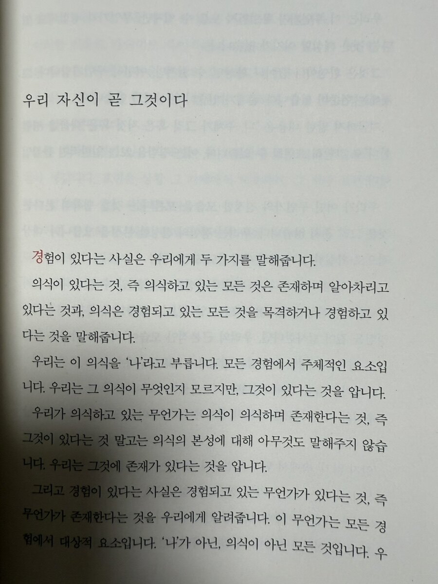 현대인들은 끊임없이 성과를 추구하며 자신의 존재 가치를 증명하려고 하지만, 이러한 과정에서 오히려 존재 결핍을 심화시키고 있다. 따라서 관조는 게으름이 아니라, 삶의 의미를 되새기고, 인간 존재의 본질을 탐구하는 중요한 태도로 자리 잡아야 한다. 흥미롭게 읽은 책이었다. 이번에 여기에서 더나가 경험의 본질을 강조하는 루퍼트 스파이라의 <사물의 투명성>을 읽을 기회가 있었다. 책은 경험의 본질을 다루는 관조와 대화를 모은 책으로, 불이론(Non-Dualism)의 관점에서 살펴본 ‘의식’에 대해 이야기 한다.