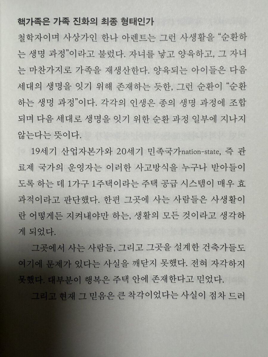 저자가 소개하는 탈주택이라는 개념은 현대 사회에서 주거 형태에 대한 새로운 시각을 제시하며, 기존의 '1가구 1주택' 모델에 대한 비판을 통해 공동체와 개인의 관계를 재조명하는 것 같다. 이 개념은 주거 공간의 변화를 넘어, 사람들 간의 상호작용과 지역 사회의 경제적, 사회적 구조를 고려한 새로운 거주 시스템을 제안하는 데 중점을 두고 있다. 저자들은 이러한 새로운 주거 모델을 통해 개인의 프라이버시와 공동체의 연결성을 조화롭게 연결하고자 한다.
