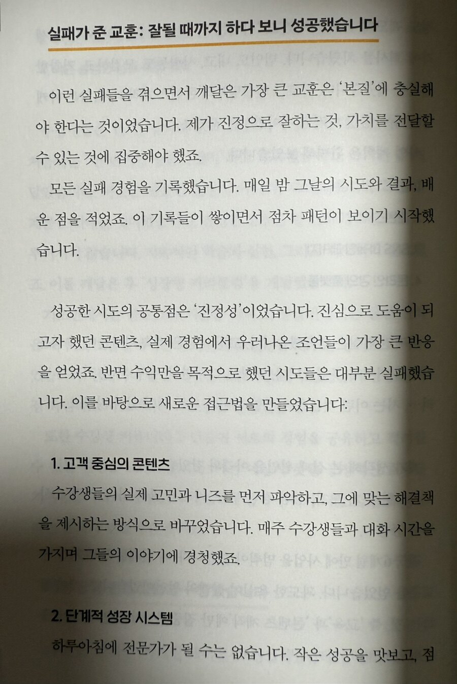이 네 명의 N잡러의 이야기는 모두 공통적으로 '실천'의 중요성을 강조한다. 완벽함을 추구하기보다는 꾸준히 시도하고 실패를 두려워하지 않는 자세가 필요하다는 것이다. 그들은 각자의 분야에서 실패를 경험했지만, 이를 통해 성장하고 다른 이들에게 도움이 되는 존재가 되었다. 이들의 성공 스토리는 퇴사 후 부업을 꿈꾸는 이들에게 큰 용기와 영감을 줄 것 같다. 각자의 길을 걸으며 얻은 경험과 지혜는, 앞으로 부업을 시작하고자 하는 이들에게 실질적인 가이드가 될 것이다. 재미있게 읽었다. ^.^