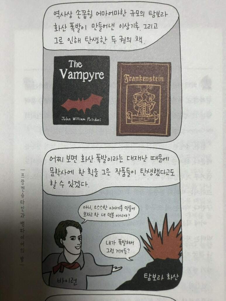 저자는 세계 문학속의 에피소드 22가지를 발췌하여 이야기 해 준다. 저자는 세계 문학사에는 우리가 익히 알고 있는 명작들이 있지만, 그 탄생 배경에는 잘 알려지지 않은 흥미로운 비하인드 스토리들을 웹툰 형식으로 전달한다. 몇가지 재미있었던 것들이다. ^.^ ( 여러 유명 작품이 탄생한 과정과 그와 관련된 역사적 사건, 번역의 오류, 그리고 예상치 못한 환경적 요인 등이 문학에 미친 영향 그리고도 많은 에피소드들이 있다. ^.^)