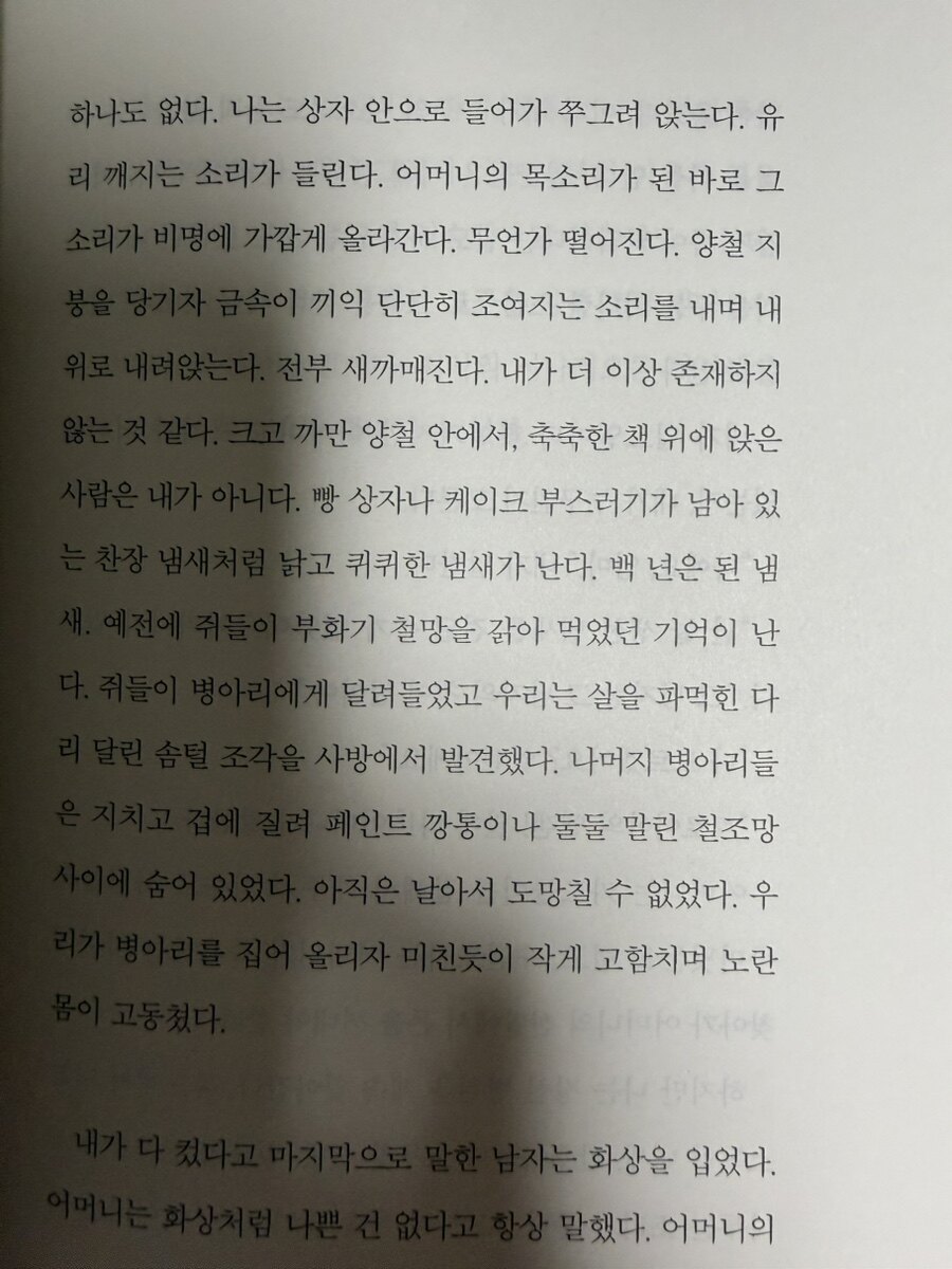 여성의 욕망과 그것이 초래할 수 있는 위험 사이의 긴장. 키건은 이 주제를 비난이나 교훈 없이, 그저 있는 그대로 제시한다. 그 담담함이 오히려 더 섬뜩하다. 20세기 중후반 아일랜드 사회에서 여성의 자리는 정해져 있었다. 부엌에서 닭을 채우고, 파슬리를 다듬고, 일요일 경기의 소음을 참아내는 것. 남자들로부터 격리되고, 숨겨지고, 문제가 되지 않도록 관리되는 존재다. <노래하는 계산원>에서는 더 불편한 진실이 드러난다. 공짜 생선 소포를 받기 위해 으스스한 우체부와 관계를 맺는 젊은 여성 코라. 이 이야기는 코라의 어린 여동생의 시선으로 전달되는데, 그 순진한 목소리가 상황의 추악함을 더욱 선명하게 만든다. 우체부가 올 때마다 심부름을 나가야 하는 화자는, 집에 돌아와서 냄새를 맡는다. 끈적해진 잠 같은, 오트밀이 넘쳐흐른 듯한 냄새. 키건은 직접적인 묘사를 피하면서도 모든 것을 느끼게 만든다.
