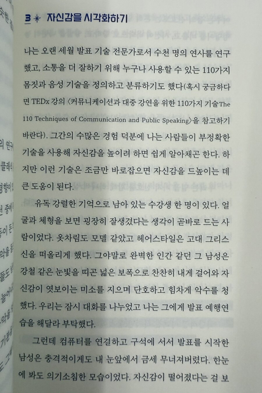 "성공은 80%의 자신감, 10%의 전문성, 10%의 운으로 달성된다." 이 공식을 처음 봤을 때는 의아했다. 전문성이 고작 10%라니? 그런데 곰곰 생각해보니 수긍이 갔다. 아무리 실력이 뛰어나도 자신감이 없으면 그 실력을 제대로 발휘할 수 없다. 반대로 실력이 부족해도 자신감이 넘치면 어떻게든 길을 찾게 된다. 자존심과 자부심의 차이에 대한 설명도 깊이 와닿았다. 자존심은 모든 기회를 고비용 저효율화하고, 자부심은 저비용 고효율화한다는 것. 자존심은 남과의 비교에서 나오지만, 자부심은 자기 자신에 대한 믿음에서 나온다. 자존심은 상처받기 쉽지만, 자부심은 쉽게 흔들리지 않는다. 나는 지금까지 자존심과 자부심을 구분하지 못했다. 누군가 나를 무시하는 것 같으면 화가 났고, 인정받지 못하면 좌절했다. 하지만 진정한 자부심은 타인의 평가에 좌우되지 않는다는 걸 이제 안다. 내가 하는 일에 대한 순수한 믿음, 그것이 모든 자신감의 근원이다.