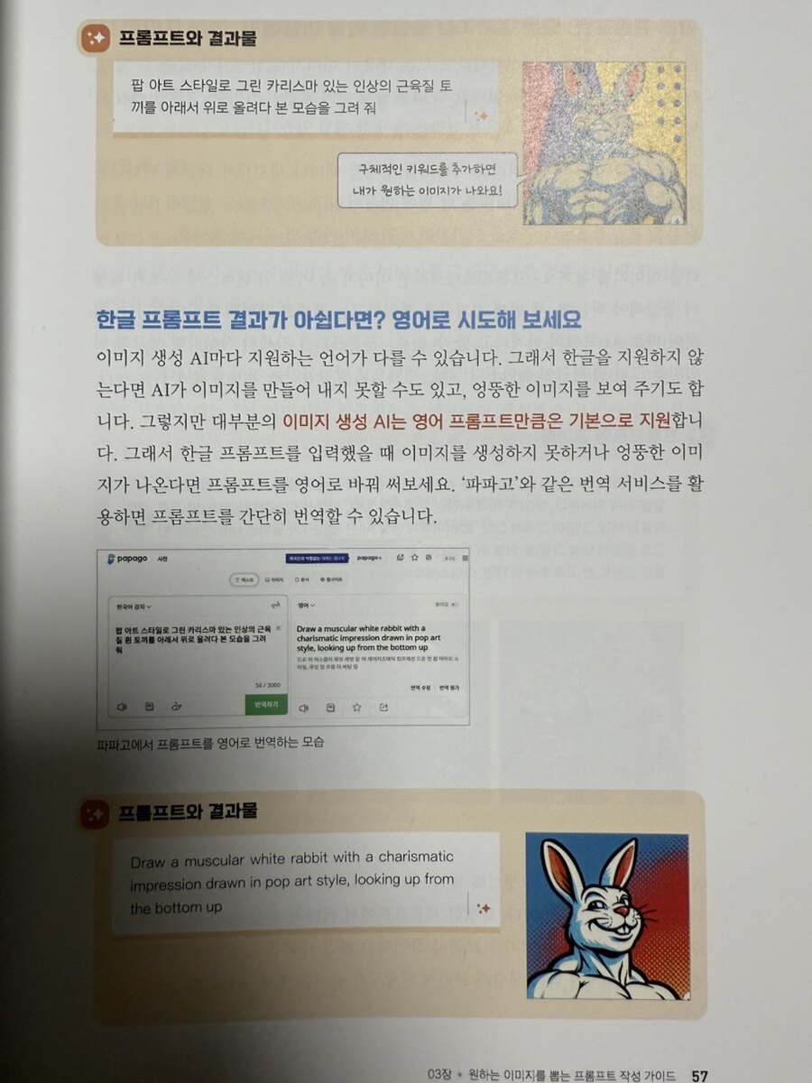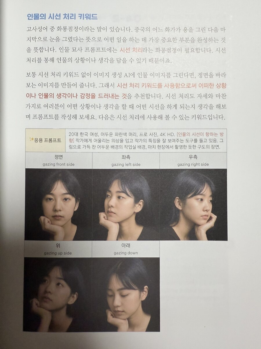 AI와 소통하는 방법은 기존의 인간 대 인간 소통과는 다른 특별한 기술이 필요하다. 책에서 소개하는 '프롬프트 체크리스트'는 이러한 새로운 소통 방식의 핵심이다. 처음에는 "예쁜 꽃 그려줘"라고 단순하게 요청했다가 기대와 다른 결과에 실망하곤 했다. 하지만 체크리스트를 활용해 "장미, 빨간색 꽃잎, 이슬방울, 아침 햇살, 클로즈업 촬영, 보케 효과가 있는 배경"처럼 구체적으로 기술하니, AI는 내 마음속 이미지와 놀랍도록 유사한 결과물을 만들어냈다. 이 과정에서 깨달은 것은 프롬프트 작성 자체가 하나의 예술이라는 점이다. 286개의 비주얼 키워드들을 조합하고 배치하는 과정은 마치 시를 쓰는 것과 같다. 각 단어가 가진 의미와 뉘앙스를 이해하고, 그것들을 적절히 조합해 완성도 높은 작품을 만들어내는 것이다. 특히 인물 묘사에 관한 키워드들을 접하면서 인상 깊었던 것은, AI가 단순히 외모만 그려내는 것이 아니라 감정과 성격, 심지어 그 사람의 이야기까지 담아낼 수 있다는 점이었다. "지친 표정의 중년 남성, 셔츠 소매를 걷어올린 채, 창밖을 응시하는 모습, 따뜻한 측면 조명"이라는 프롬프트로 만들어진 이미지에서는 정말로 그 사람의 삶의 무게가 느껴졌다.