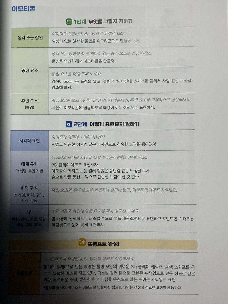 가장 놀라웠던 것은 이 모든 것이 무료로 시작할 수 있다는 점이었다. 책에서 소개하는 실습 예제들은 모두 무료 AI 도구들을 기반으로 한다. ChatGPT의 기본 이미지 생성 기능부터 시작해, 다양한 플랫폼들의 무료 버전만으로도 충분히 높은 품질의 이미지를 만들어낼 수 있다. 처음 만들어본 동호회 로고는 어설펐지만, 몇 번의 시도 끝에 전문 디자이너가 만든 것 같은 완성도 높은 결과물을 얻을 수 있었다. 북극곰 스티커, 우주인 캐릭터, 심지어 픽토그램까지. 예전 같았으면 외주를 맡겨야 했을 작업들을 혼자서 해결할 수 있게 된 것이다. AI 이미지 생성에서 가장 감동적인 순간은 감정이 담긴 이미지를 만들어낼 때다. 게임 캐릭터를 디자인하면서 그 캐릭터의 배경 스토리를 생각하고, 그것을 시각적으로 표현해내는 과정. 동물병원 마스코트를 만들면서 아픈 동물들을 위로하는 따뜻한 마음을 담아내는 과정이다. 특히 인상 깊었던 것은 이모티콘 제작 과정이었다. 단순해 보이는 표정 하나하나에도 수많은 감정의 층위가 있고, AI는 그런 미묘한 차이까지 포착해낼 수 있었다. 기쁨, 슬픔, 놀라움, 분노... 각각의 감정을 표현하는 방식이 모두 달랐고, 그 차이를 이해하고 활용하는 것 자체가 하나의 학습 과정이었다.