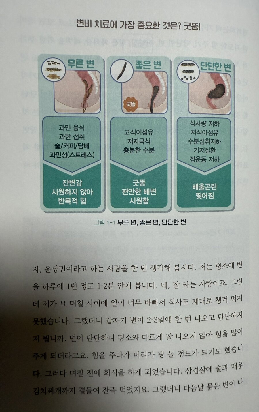 현대 사회에서 변비는 더 이상 개인의 은밀한 고민이 아니다. 스트레스가 일상화되고 생활 패턴이 불규칙해지면서, 배변의 어려움을 호소하는 사람들이 급격히 늘어나고 있다. 하지만 대부분의 사람들은 변비를 단순히 '치료해야 할 병'으로 인식하며, 임시방편적인 해결책에만 의존하고 있다. 이번에 읽을 기회가 있었던 <응꼬형과 함께 하는 변비 탈출 10계명>은 윤상민 중앙항외과 대표원장이 제시하는 '변비 탈출 10계명'으로 이러한 고정관념에 정면으로 도전한다. 10년 넘게 항문질환 바이오피드백 치료에 전념해온 그의 임상 경험은 변비에 대한 근본적인 접근 방식의 변화를 요구한다. 변비를 단순히 '없애야 할 문제'가 아닌 '관리해야 할 상태'로 바라보는 시각의 전환이 바로 그것이다.