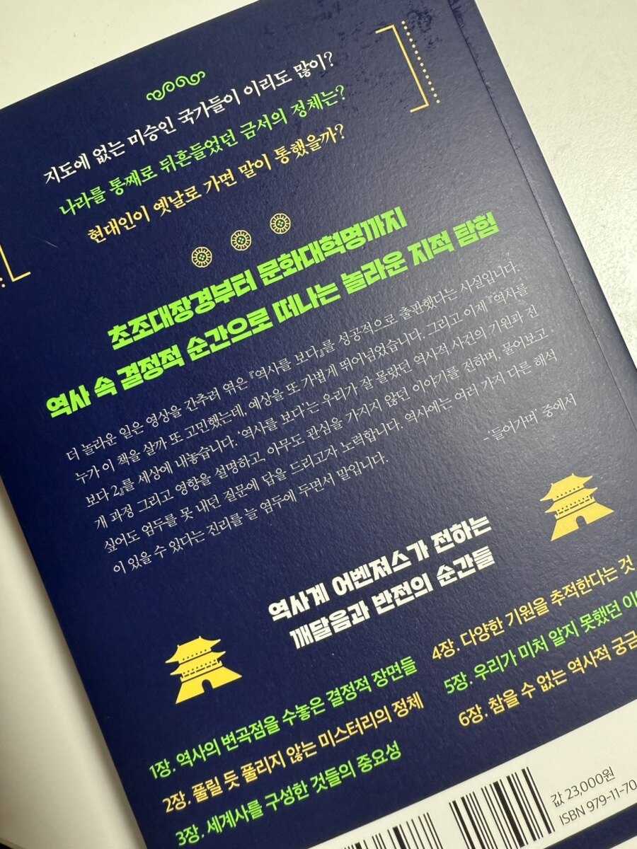 <역사를 보다2>. 두번쨰 작품을 바로 읽어보았다. 책장을 넘기는 손끝에서 느껴지는 것은 지식의 습득만이 아니었다. 마치 시간의 미로 속에서 길을 잃은 탐정이 된 기분이었다. 각 장을 읽어갈 때마다, 나는 과거의 증인이 되기도 하고, 때로는 미래의 고고학자가 되기도 했다. 특히 인상적이었던 것은 역사학자들을 '기록 탐정'에 비유한 대목이었다. 그들이 파편화된 자료들을 모아 하나의 그림을 완성해 나가는 과정은, 마치 범죄 현장에서 단서를 수집하는 수사관의 모습과 닮아 있었다. 차이가 있다면, 이들이 추적하는 '범인'은 이미 수백, 수천 년 전에 사라진 시간 그 자체라는 점이다. 책을 읽으면서 나 역시 그런 탐정이 된 듯한 착각에 빠졌다. 고대 이집트인들이 바퀴벌레를 위협적으로 그린 이유, 젓가락이 나라마다 다른 모양을 갖게 된 배경, 몽골이 세계를 정복할 수 있었던 진짜 이유 등을 추리해 나가는 과정이 스릴러 소설을 읽는 것만큼이나 흥미진진했다.