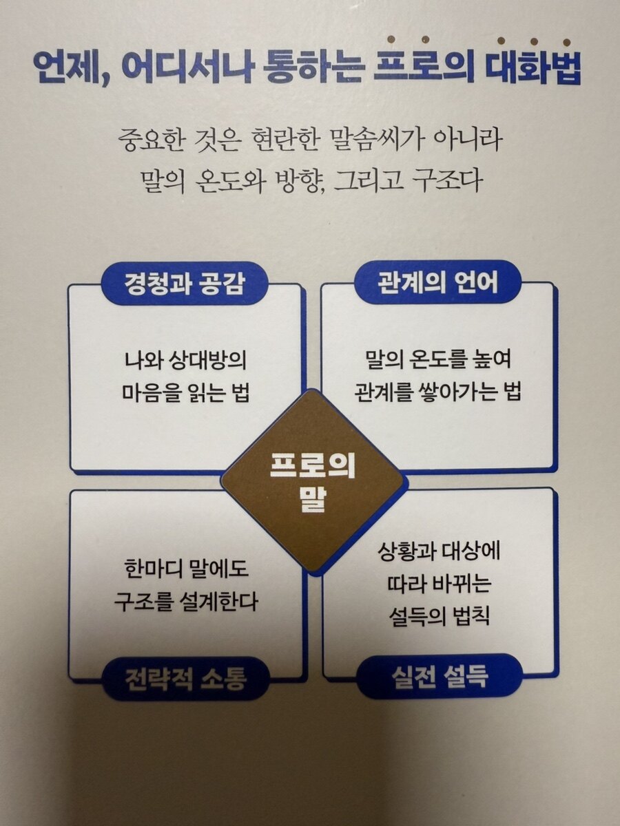 ​우리가 흔히 '말을 잘한다'고 하면 유창한 언변이나 논리적인 설득력을 떠올리기 쉽다. 그러나 저자는 진짜 '잘 말하는 것'은 그런 표면적 인 기술보다 깊은 공감과 진정성에서 시작된다는 걸 이야기 한다. 대화란 말솜씨를 뽐내는 게 아니라, 상대방의 마음을 움직이고 관계를 튼튼하게 만드는 것이 대화의 본질이라는 것이다. 마치 내 속마음을 들여다보는 것 같아서 밑줄을 치면서 흥미롭게 읽었다.