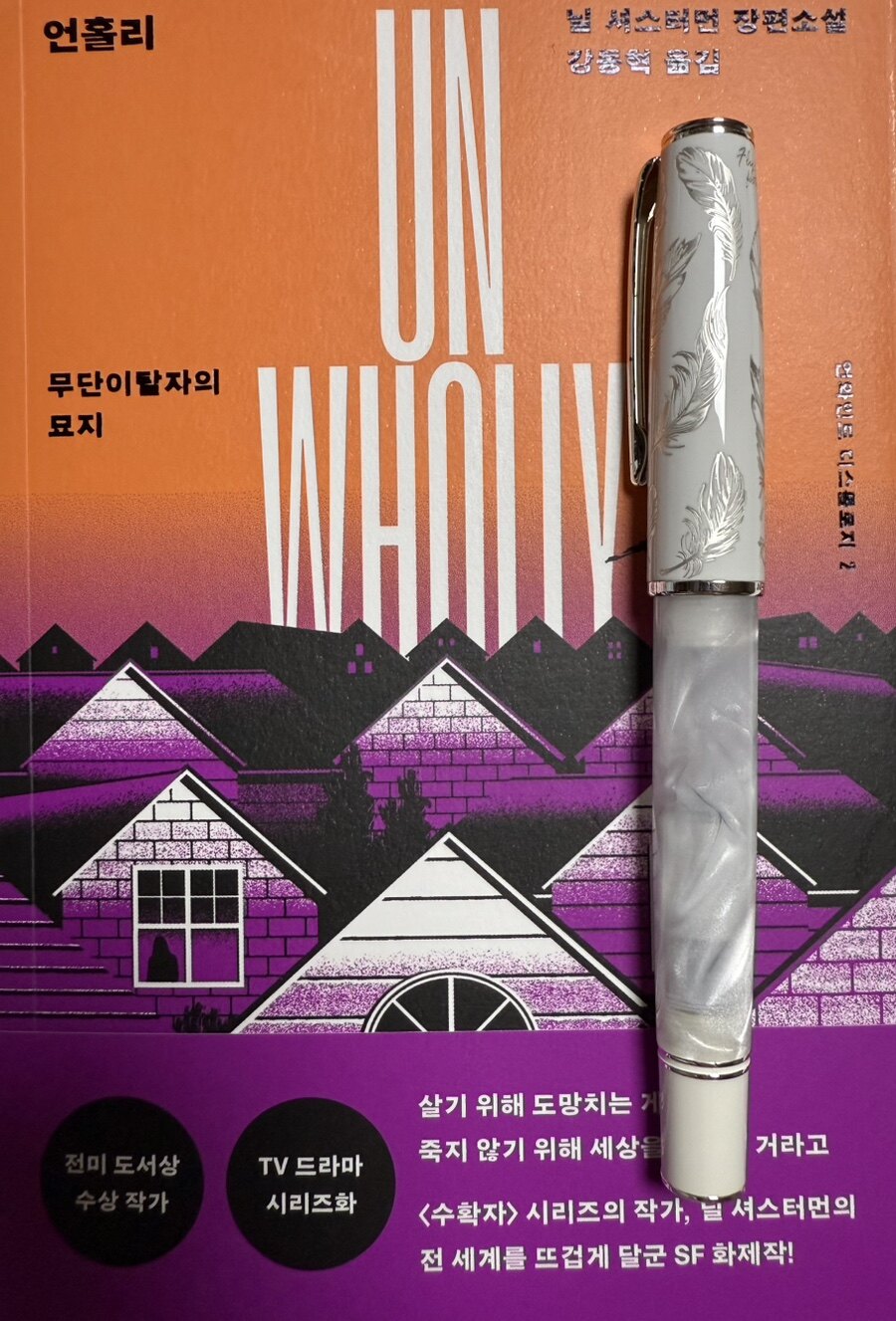 <언와인드>, 그 이름만으로도 가슴을 저미게 했던 이야기는 깊은 질문을 던졌다. 인간의 존엄성과 생명의 가치, 그리고 사회 가 만들어낸 잔혹한 합리성 앞에서 우리는 무엇을 선택해야 하는가. 그 이야기의 끝에서 리사와 코너, 그리고 레브의 운명은 미지의 공간으로 우리를 이끌었고, 나는 숨죽이며 다음 페이지를 기다렸다. <언홀리>는 바로 그 기다림의 응답처럼 다가왔다. 무덤이라는 이름의 피난처에서 스스로의 삶을 꾸려나가는 아이들, 그리고 그 속에서 새로운 존재의 등장을 예고하는 서사는 분명 매혹적이었다. 하지만 책장을 넘기고, 귀를 기울이는 순간, 미묘한 균열이 느껴지기 시작했다. 첫 책이 선사했던 몰입감과 사유의 깊이가 어딘가 희미해지는 듯한 낯선 파동. 분명 이야기는 빠르게 전개되고 있었지만, 내 마음속에서는 자꾸만 '어딘가 이상하다'는 경고음이 울렸다. 그만큼 책에 몰입하게 되어서 흥미로웠지만 아쉬움도 남아 있었다. 그래도 책이 주는 의미를 생각하면서 정주행하면서 읽는 재미가 있었다.