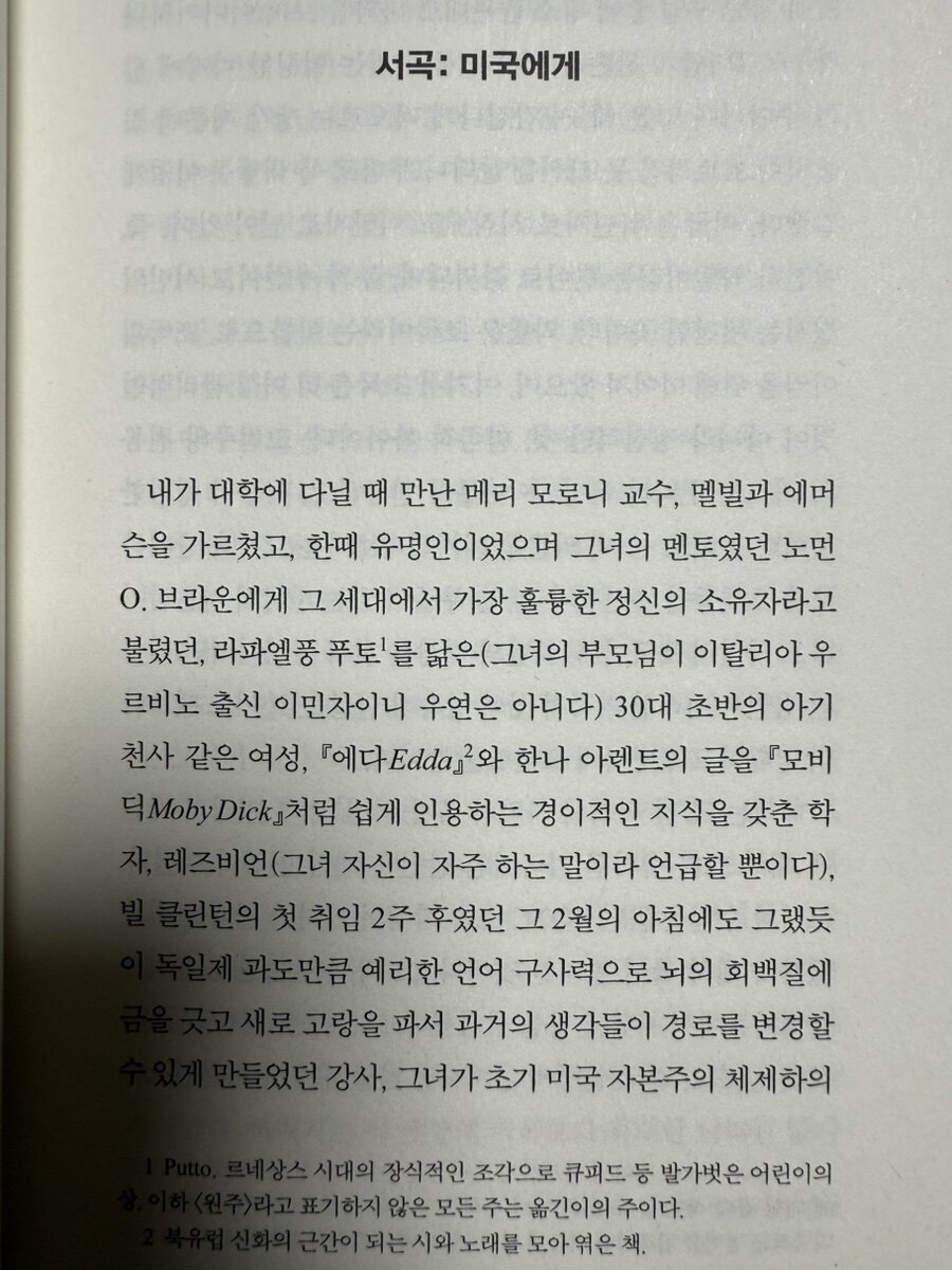 ​미국, 식민지에서 시작해 식민지로 남은 나라다. 책에서 미국을 "여전히 약탈이라는 단어로 정의되는 곳"이라고 묘사하는 작가는, 미국이 자유와 기회의 땅이 아니라 부의 축적을 최우선으로 삼으며 시민의 질서를 뒷전으로 미루는 국가라는 점을 강조한다. 이러한 관점은 책 전체를 관통하는 핵심적인 시각이며, 미국의 경제적 구조와 사회적 가치관이 어떻게 형성되었는지를 비판적으로 조명한다. 독자로서도 '미국의 번영이 누구를 위한 것인가?'라는 근본적인 의문을 품게 된다.
