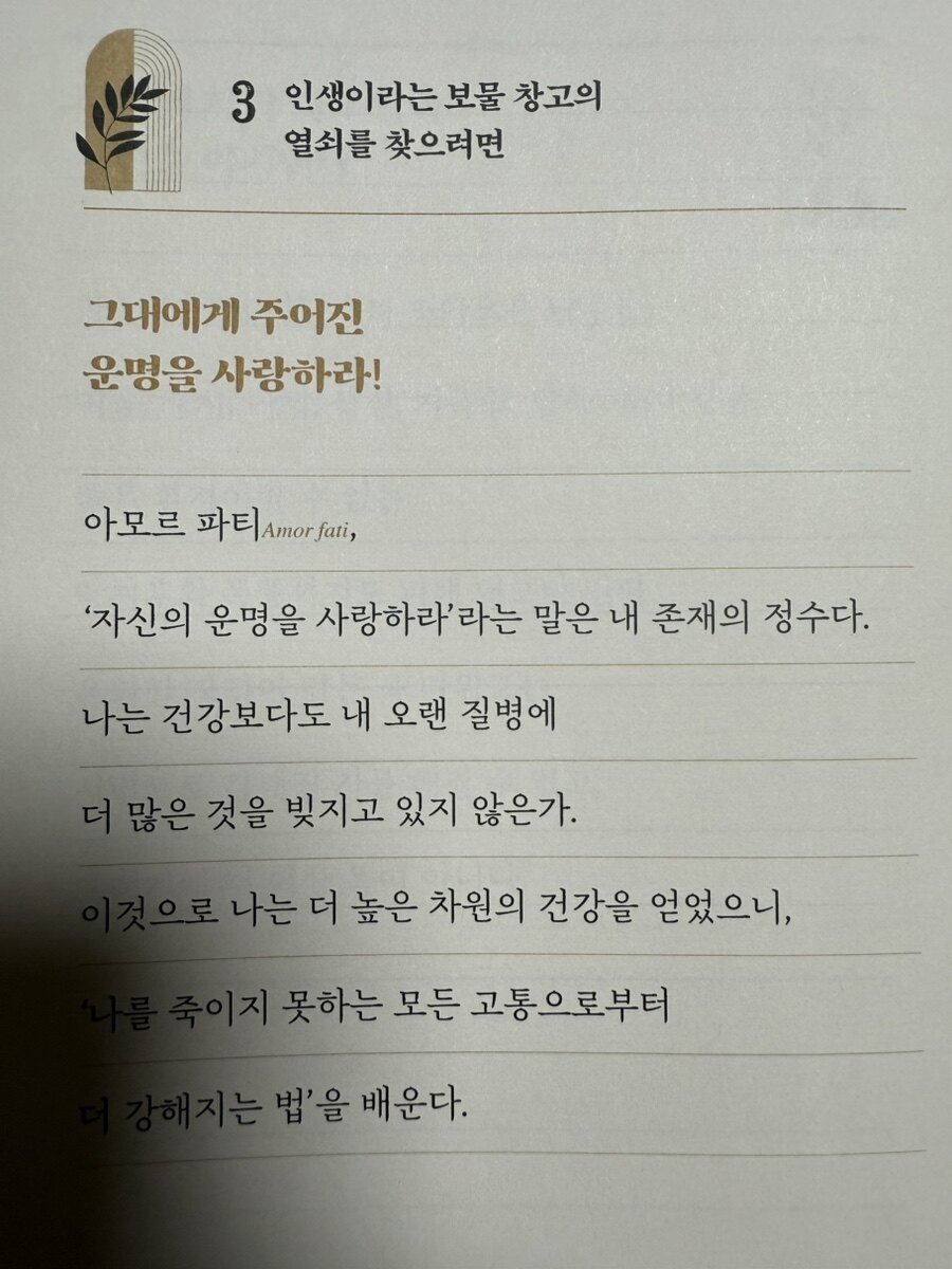 이 필사 책은 나에게 철학적 성찰의 기회를 제공해 주었고, 삶의 의미를 찾는 데 큰 도움이 되었다. 다섯 철학자의 아포리즘을 통해 나는 나만의 철학을 구축하고, 일상에서의 기쁨과 의미를 발견할 수 있었다. 앞으로도 이 책을 통해 지속적으로 나의 생각과 감정을 정리하며, 삶의 다양한 문제에 대한 통찰을 이어 나갈 것이다. 필사라는 활동이 나에게 이렇게 깊은 영향을 미칠 줄은 몰랐다. 이 책은 나의 삶에 긍정적인 변화를 가져다 준 귀중한 경험이었다.이 필사 책을 더욱 효과적으로 활용하기 위해 몇 가지 제안을 하고 싶다. 첫째, 매일 정해진 시간을 정해놓고 필사 하는 습관을 들이는 것이다. 아침에 일어나거나 저녁에 하루를 마무리하면서 아포리즘을필사하면 좋을 것 같다. 둘째, 필사한 내용을 일상에서 적용해 보는 것이다. 각 아포리즘을 삶의 다양한 상황에 맞춰 해석하고, 그 메시지를 실천하려고 노력은 뜻깊은 결과를 가져올 것이다. 셋째, 필사 한 내용을 친구나 가족과 나누어 보는 것이다. 서로의 생각을 공유함으로써 더 깊은 이해와 통찰을 얻을 수 있을 것이다. 이러한 방법들을 통해 이 필사 책이 삶에도 긍정적인 영향을 미치길 바라본다. ^.^