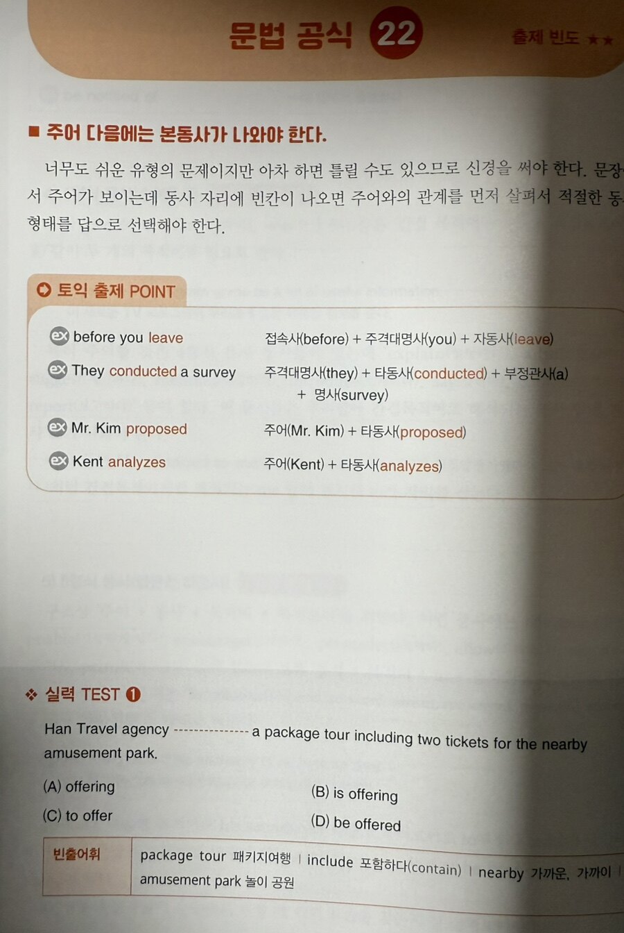 토익 시험에서 문법은 매우 중요한 요소. 특히 PART 5와 6에서는 빈칸 채우기 유형의 문제가 출제되며, 이는 문법적 지식이 없으면 해결하기 어려운 문제들이 많다. 따라서, 문법의 기본 개념을 확실히 이해하고, 자주 출제되는 문법 공식을 암기하는 것이 필요하다. 예를 들어, 주어와 동사의 일치, 시제의 일관성, 전치사의 사용 등은 자주 출제 되는 주제 유형이다. 이러한 문법 규칙을 체계적으로 정리하고 반복적으로 학습함으로써, 시험에서의 실수를 줄일 수 있을 것이다. 이와 같이 토익 문법 고득점을 위해서는 효율적인 학습 방법 취득과 문법 주제의 출제 빈도를 분석하는 것이 중요하다. 자주 출제되는 문법 항목을 우선적으로 학습하면, 짧은 시간 안에 더 많은 점수를 얻을 수 있을 것이다. 만약, 특정 품사가 자주 출제되는 경향이 있다면, 그 품사에 대한 이해를 깊이있게 다져야 한다. 이를 통해 학습자는 시험에서의 전략을 세울 수 있으며, 출제 빈도를 기반으로 한 학습 계획을 세우면, 시간 관리에도 도움이 될 것이다.