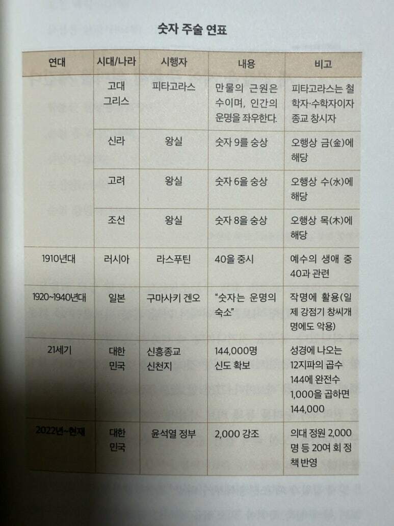 몇년 전 사회적으로 크게 문제가 되었던대선 후보들이 비보술을 믿는 것은 그들의 자신감 결여와 카리스마 부족에서 기인한다고 지적된다. 윤석열 정부가 의료 개혁과 관련한 대학입학 인원 수에 있어서, 특정 숫자(2,000)를 고집하는 것은 집단적으로 주술에 걸리게 하는 효과를 노린 것으로 해석된다. 또한 역사적으로도 고려시대에도 숫자와 색을 통해 주술적 영향을 미쳤으며, 특히 검정색은 수(水)에 해당하는 색으로 사용되었다. 고려 공민왕 시절, 풍수관리자가 검정색의 중요성을 강조하며 국가의 풍속과 의복에 대한 규정을 제정한 사례가 있다. 이는 국가의 번영과 재난을 연결짓는 주술적 사고를 반영한다. 고려시대에는 비결 위조가 문제시되었으며, 숙종 시절에 음양서를 거짓으로 만든 사건이 발생했다. 이는 가난한 지식인들이 생계를 위해 저지른 범죄로, 위조된 비결들이 사회에 혼란을 초래했다. 예종은 이러한 문제를 해결하기 위해 비결과 풍수에 관한 책들을 비교하고 정리하여 『해동비록』을 편찬하게 된다. 이는 비결의 신뢰성을 높이고 사회적 혼란을 줄이기 위한 조치였다. 또한 조선 시대 예종의 부왕인 숙종 시절, 김위제가 남경(한양) 천도를 주장하며 기존의 공인 풍수서를 인용하지 않고 새로운 비결을 제시함으로써 풍수계를 흔들어 놓았다. 이는 전통적인 풍수 사상에 대한 도전이었으며, 예종은 이를 해결하기 위해 비결과 풍수에 대한 체계적인 정리를 추진했다. 이러한 역사적 사건은 한국 사회에서 주술적 요소가 어떻게 작용했는지를 보여주는 중요한 사례로 남아 있다. 이 이외에도 저자는 여러가지 역사적인 사례를 분석하여 쉽게 이해하게 한다