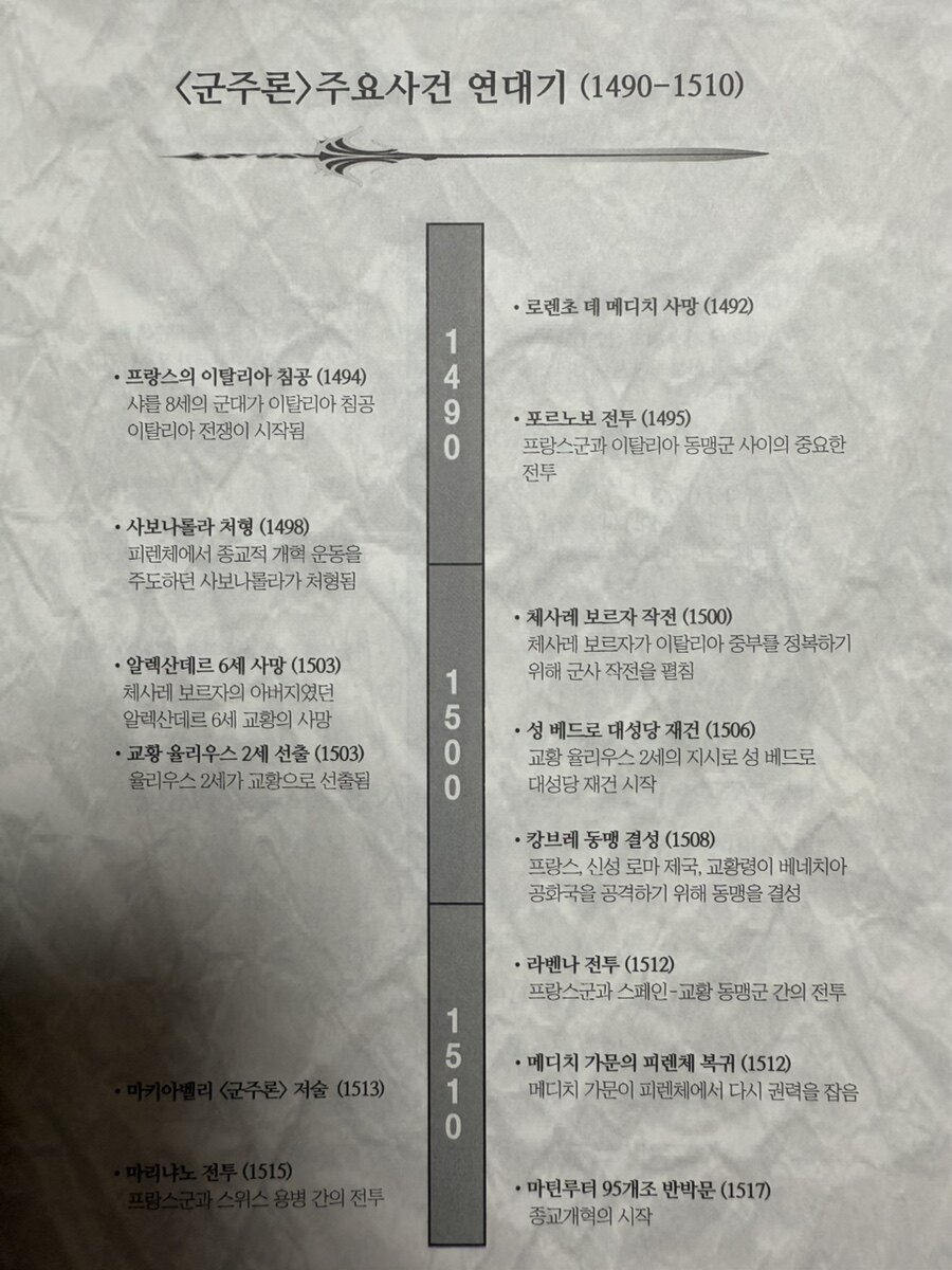 이번에 발간된 마키아벨리의 『군주론』은 체계적으로 구성되어 독자들이 역사적 맥락과 통치 전략을 깊이 이해할 수 있도록 설계되었다. 먼저, 이 책은 1430년부터 1530년까지 이탈리아에서 발생한 주요 사건들을 배경으로 제시하며, 당시 이탈리아 반도의 정치적 상황을 상세히 설명한다. 이를 통해 독자들은 마키아벨리의 사상이 형성된 역사적 맥락을 파악할 수 있다. 특히, 이탈리아 도시 국가들의 분열, 외세의 개입, 메디치 가문의 복귀와 같은 사건들이 그의 통치론에 영향을 미친 점을 강조한다.