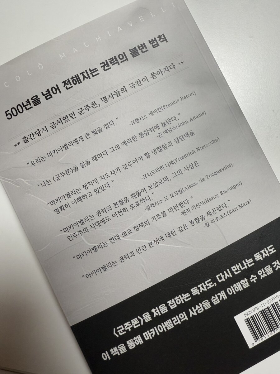 특히, 이 책은 정치학, 경영학, 군사학 등 다양한 분야에서 『군주론』이 미친 영향을 분석하고, 주요 학자들의 해석과 비판을 함께 제시한다. 이를 통해 독자들은 마키아벨리 사상이 현대에도 적용 가능한 통찰을 제공하며, 다양한 관점에서 그의 주장을 이해할 수 있다. 다른 『군주론』 서적과의 차별점이 많은 것 같다. 첫째, 체계적이고 구조적인 접근 방식이다. 역사적 사건의 연대기를 서술하며, 각 장의 주요 내용을 요약하고 해설하는 방식은 독자들에게 명확한 가이드를 제공한다. 둘째, 현대적 해석과 적용 가능성에 대한 논의이다. 단순히 과거의 텍스트로 머무르지 않고, 오늘날의 정치적, 사회적 맥락에서 『군주론』을 재조명한다. 셋째, 시각 자료의 활용이다. AI 기술을 이용한 사진과 그림은 독자들에게 시각적 즐거움을 제공할 뿐 아니라, 내용을 기억하기 쉽게 만든다. 이와 같은 요소들은 이 책이 단순한 번역서를 넘어 독자들에게 깊은 통찰을 제공하는 독창적인 『군주론』 해설서로 자리매김하는 것 같다.