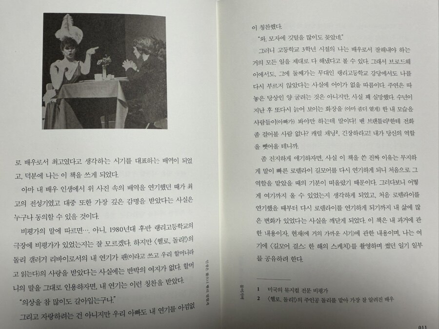 <인생은 짧으니 빨리 말할께>는 로런의 유년 시절부터 시작해, 배우 지망생으로서의 어려움과 성공적인 활동기를 생생하게 담아낸다. 그녀는 뉴욕에서의 생존을 위해 고군분투하며, 오디션에서의 실수와 불안함을 극복하며 성장해 나간다. 이러한 경험들은 독자들에게 그녀의 진정성과 인간적인 면모를 전달하며, 연기라는 직업의 불확실성을 잘 보여준다. 그 과정속에서 그녀의 아버지와의 통화 내용은 자연스러운 미소를 짓게 한다. 1년 먼저 들어간 월반으로 인한 1년이라는 시간을 언제 어떻게 활용할 수 있을까 생각하는 그녀의 이야기는 나 자신에 대해서도 생각하게하는 이야기 였다. 월반은 아니지만 나도 1년 먼저 초등학교에 들어간 경험이 있기에...ㅎㅎ