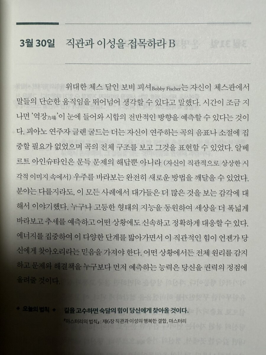 지드는 몽테뉴의 사상을 통해 ‘꾸준함’과 ‘자기 수용’의 중요성을 강조한다. 그는 사람들이 자신을 자주 비난하고 후회하는 경향이 있음을 지적하며, 이러한 태도가 오히려 삶을 낭비하게 만든다고 주장한다. 몽테뉴는 자신이 할 수 없는 일에 자책하기보다는, 꾸준히 나아가며 놓친 것을 발견해가는 과정이 중요하다고 강조했다.이러한 태도는 삶을 바라보는 긍정적인 시각을 형성하며, 스스로를 허용하는 것이 인생을 더 의미 있게 만든다는 메시지를 담고 있다. 지드는 몽테뉴의 철학을 통해 자신이 원하는 방향으로 살아가는 것의 중요성을 일깨운다. 평범한 오늘을 감사히 여기고, 우리 자신만의 삶을 긍정적으로 살아갈 수 있도록 하루하루 성실하게 살아가야 겠다. ^.^