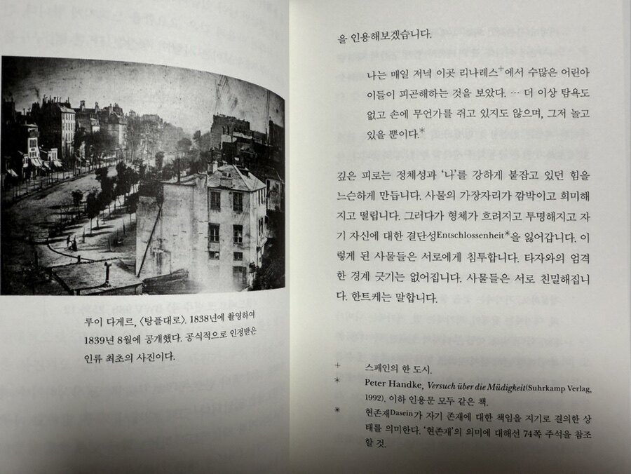 저자는 현대 사회에서 우리가 직면하는 여러 문제에 대해서 철학적으로고민하며, 인간 존재의 본질과 인간 관계의 의미를 깊이 성찰하고 있다. 책은 하이데거의 사유를 바탕으로 에로스, 모순, 우울, 희망 등과 같은 개념을 통해 현대인의 삶을 조명한다. 한병철은 에로스를 사유의 원동력으로 삼으며, 사유하는 행위가 미지의 영역으로 나아가는 중요한 과정임을 강조한다. 에로스의 날개 없이 사유하기란 불가능하다는 주장은 우리에게 새로운 아이디어와 관점을 수용하는 데 필수적인 요소가 무엇인지 고민하게 만든다. 재미있게 읽은 내용 중 하나는, 모든 아름다움이 모순에서 비롯된다고 주장하며, 진실이란 이러한 모순적인 아름다움 안에서 완성된다고 강조하고 있다는 것이다. 그는 ‘어두운 빛’이나 ‘밝은 슬픔’과 같은 역설적 표현을 통해 우리에게 깊은 사유의 여지를 제공한다. 이러한 모순은 현대 사회의 복잡한 감정을 반영하며, 우리가 다양한 측면에서 현실을 이해하고 수용할 수 있도록 해 주는 것 같다. 또한, 그는 반복이 아닌 변주곡의 미학을 통해 글쓰기의 방식을 설명하며, 동일한 패턴이 시간이 지남에 따라 더욱 깊어질 수 있음을 보여준다