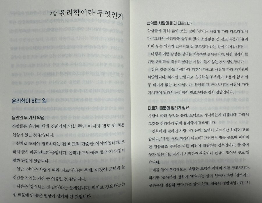 가족, 친구, 연인 등과의 관계에서 윤리는 상호 존중과 배려를 바탕으로 형성된다. 이러한 관계는 우리가 삶의 의미를 찾고, 정서적 안정감을 느끼는 데 도움을 준다. 저자는 이 친밀한 관계가 개인의 삶을 완성하는 데 필수적이라 고 강조한다. 이처럼 윤리 철학은 우리에게 인간관계의 중요성을 일깨워 준다.