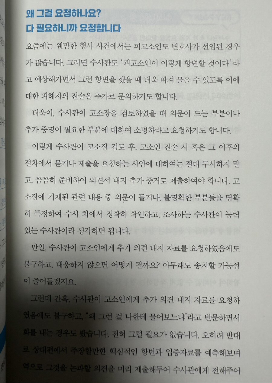 고소는 처음부터 엄중한 상황으로 시작되기 때문에 사전 지식이 없으면 예상치 못한 피해를 겪기 쉽다. 책에서 언급한 것처럼, 고소를 당한 순간 경찰, 검찰, 법원에 이르는 긴 형사 절차의 시작이 되며, 대응하지 못할 경우 억울하게 처벌받거나 더 큰 손해를 감수해야 할 가능성이 높다. 첫 조사부터 적극적인 주도권을 잡지 못하면 그 이후의 대응이 더욱 어려워지며, 이는 법적 대응에서 불리한 결과로 이어질 수 있다고 저자는 조언한다. 이 책은 고소를 효과적으로 대응하기 위해 고려해야 할 주요 요소를 세 가지로 구분한다: 대응의 초기 단계에서 신속하고 정확한 전략 수립, 고소장의 확보, 그리고 각 상황에 맞는 변론 방향성 설정이다. 이 중에서도 고소장이 접수된 직후가 골든타임이라 강조하며, 고소장이 가진 정보의 중요성을 짚어준다. 예컨대 고소장의 구체적인 내용 파악을 통해 방어 논리를 마련하거나, 고소의 취지와 상대방의 입장을 명확히 이해하여 주도권을 갖는 것이 중요하다.