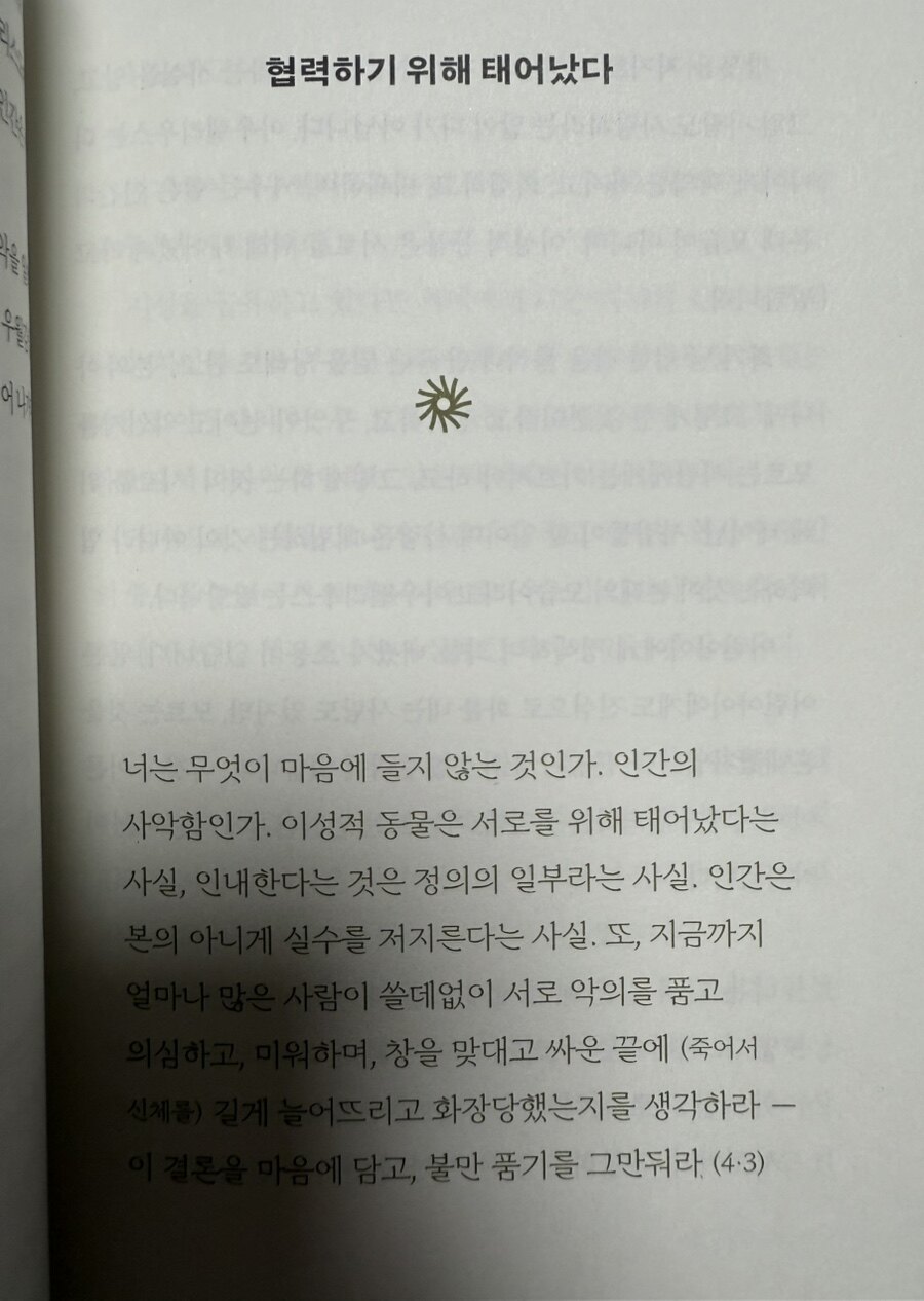 최근 작가 <한강>의 노벨문학상 수상으로 도서의 쏠림 현상이 있기는 하지만, 철학관련 코너도 스테디하게 인기를 끌고 있는 것 같다. 서점에서 인기를 끌고 있는 자기계발 서적이나 현대 철학 관련 서적들은 이번에 아우렐리우스의 사상을 보다 쉽게 접근할 수 있도록 편집한 결과물로, 사람들이 자신의 삶을 돌아보고, 보다 나은 방향으로 나아가기 위한 지혜를 찾게 조언해 주는 책을 읽을 기회가 있었다. 기시미 이치로의 「명상록』 재해석은 아우렐리우 스의 철학을 현대인의 삶에 적용할 수 있는 기회를 제공해 주는 것 같다. 저자는 아우렐리우스의 철학이 현대 사회에서 우리가 직면한 여러 문제를 해결하는 데 어떻게 기여할 수 있는지를 탐구하고자 하고, 아우렐리우스의 통찰은 단순히 고대의 지혜에 그치지 않고, 오늘날 우리가 필요로 하는 마음의 평화와 자기 이해를 위한 중요한 길잡이가 될 수 있다고 이야기 한다.