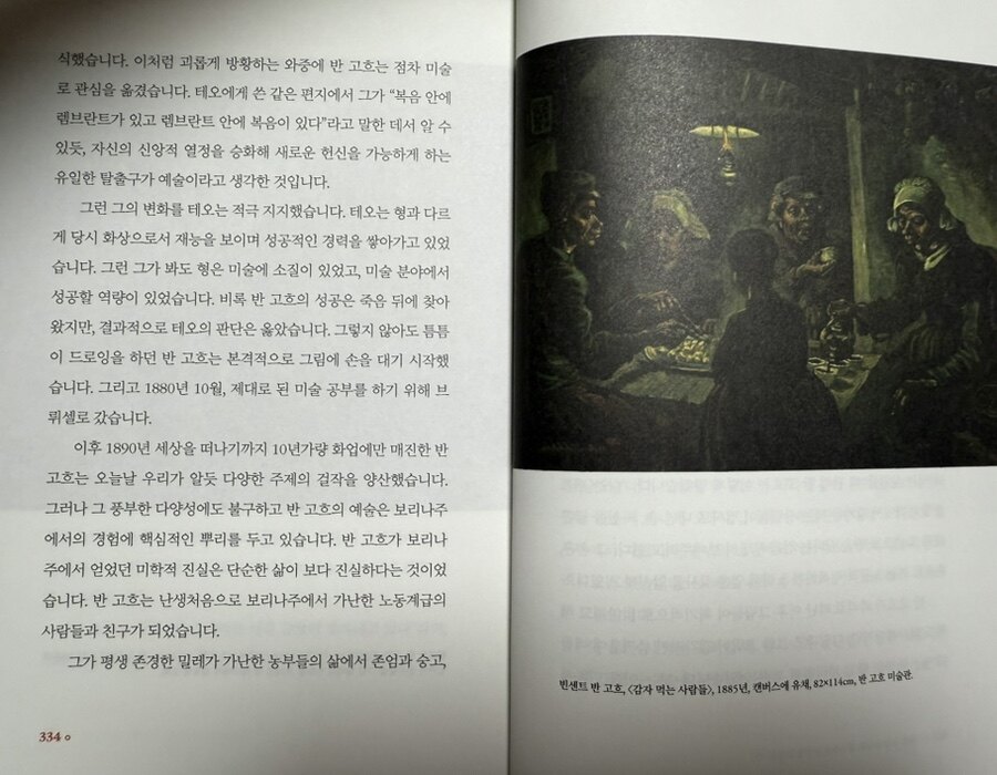 우리는 그림을 보면서 행복을 느끼기도 하고, 슬픔을 느끼기도 하고, 위로를 받기도 한다. 그래서 예술 작품속에서 미술이 차지하는 영역을 크다고 할 수 있을 것 같다. 구석기 시대의 동굴 속에 남겨진 사냥을 하고 여신을 섬기는 그림을 남김으로써 시작된 인류의 미술의 역사는 그리스 로마 시대의 찬란했던 예술의 융합 시대를 거쳤고, 중세 시대의 신 중심의 예술, 그리고 이후 나타난 새로운 인간에 대한 발견으로 시작된 르네상스로 부터 바로크, 로코코, 신고전주의 등등 수 많은 미술 사조가 나타났다. 역사와 더불어 예술을 같이 보면 보다 이해하기도 쉽고 기억도 쉽게 될 듯하다. 이번에 미술 작품을 남긴 작가의 관점과 이를 감상하는 관람자의 관점에서 바라본 예술 작품속에 담긴 의미와 우리에게 주는 위안에 대한 글을 읽었다. 저자는 미술 분야의 전문가로 기자로서의 많은 경험에서 나오 는 미술 작품에 대한 저자만의 독특한 시각을 선사하고 있다. 이주헌님의<어제는 고흐가 당신 얘기를 하더라>였다. 좋아하는 미술 작품속으로 들어가 본다.