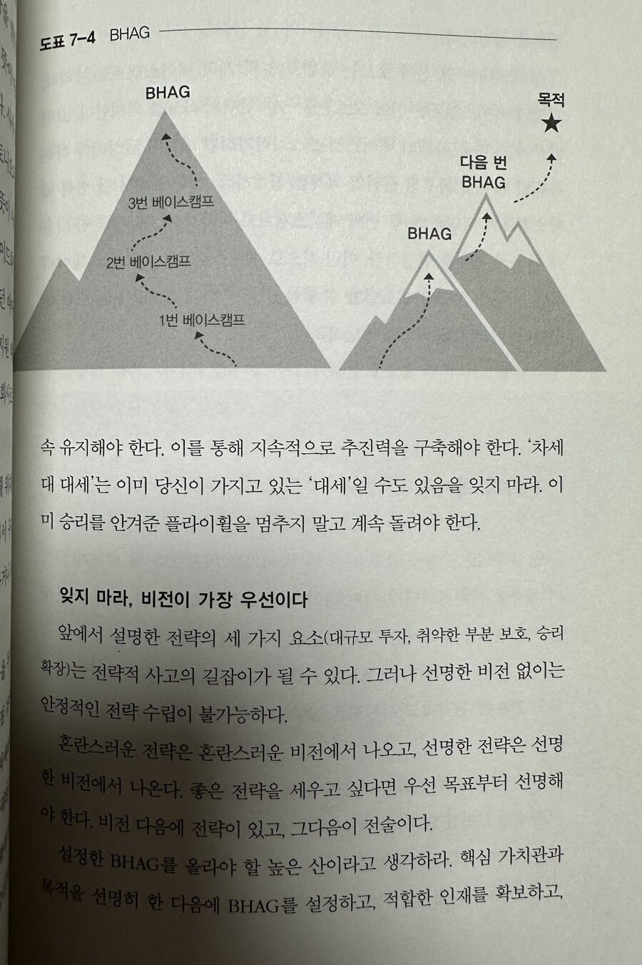 비전은 리더가 조직을 올바른 방향으로 이끌기 위한 필수 요소이다. 비전은 단순한 목표 설정을 넘어서, 조직의 핵심 가치와 목적을 담아내야 한다. 콜린스는 비전이 조직을 하나로 묶고 장기적으로 번영할 수 있는 기반이 되어야 한다고 강조한다. 리더는 비전을 통해 구성원들에게 영감을 주고, 그들이 목표를 향해 나아갈 수 있도록 이끌어야 한다. 리더는 긍정적이고 적극적인 마인드셋을 통해 기회를 창출한다. 성공의 반대말은 성장'이라는 메시지는 지속적인 성장을 위한 사고 방식의 중요성을 일깨운다. 이 장에서는 리더가 어떻게 긍정적인 마인드를 유지하고, 어려운 상황에서도 행운을 가져올 수 있는지를 탐구한다. 긍정적인 태도는 위기 속에서도 기회를 발견하는 힘이 된다. 위대한 기업으로 가는 지도에서 짐 콜린스의 경영 이론을 한 장의 지도처럼 정리하여, 위대한 기업으로 도약하기 위한 단계별 로드맵을 제시한다. 규율을 갖춘 사람, 생각, 행동의 영속성 구축 등 네 가지 단계는 조직이 위대함에 이르는 길을 설명한다. 리더는 이러한 단계를 통해 조직의 목표를 명확히 하고, 구성원들이 함께 나아갈 수 있도록 방향을 제시해야 한다.