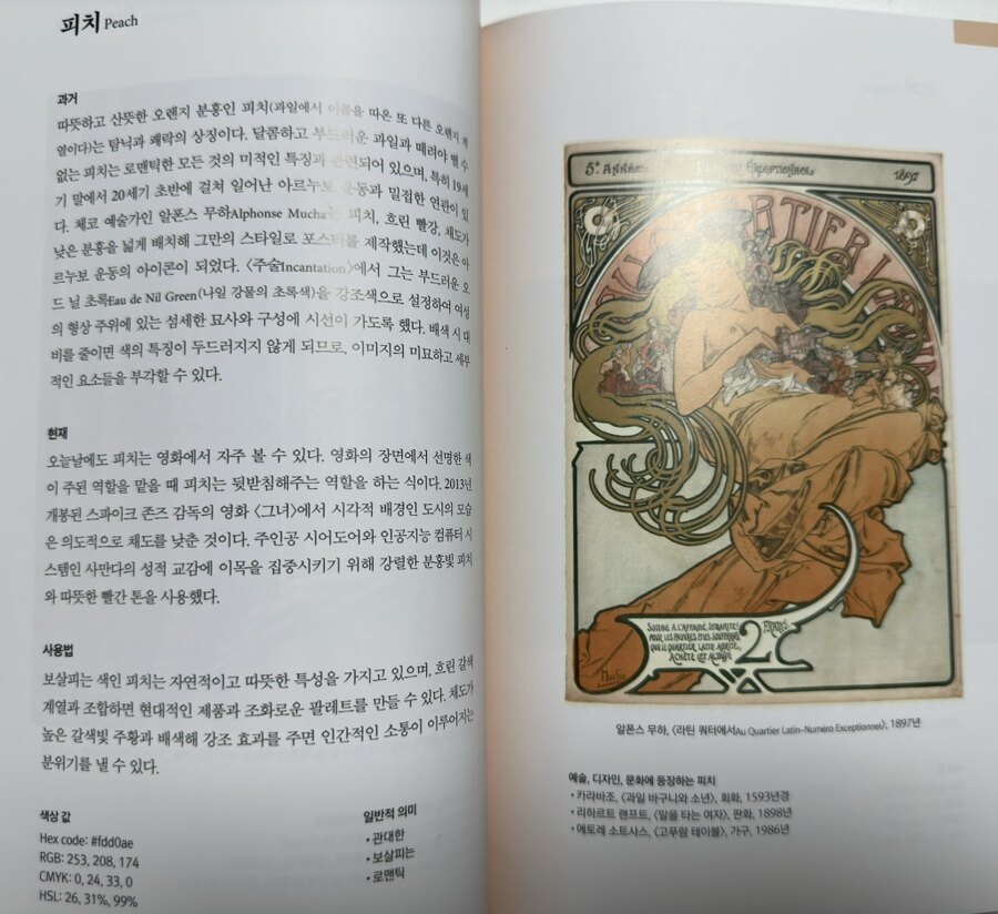 이 책은 두 개의 주요 목차로 나뉘어 있습니다. 첫 번째 목차에서는 색에 대한 기본적인 이론을 설명하고, 두 번째 목차에서는 색의 역사와 상징성을 다룬다. 첫 번째 부분에서는 색의 기본 개념을 소개한다. 색체계, 색상환, 색채 심리학 등을 통해 색의 기초를 쉽게 설명하고, RGB, CMYK, HSL, HEX 코드와 같은 다양한 색 표현 방식을 소개한다. 이러한 정보는 디자이너나 아티스트가 색을 선택하고 조합하는 데 필수적인 지식이다. 또한, 색의 유행이 시대에 따라 어떻게 변화하는지를 설명하며, 현재 유행하는 100가지 매력적인 색상을 제시하여 독자들이 실질적으로 활용할 수 있도록 안내한다. 두 번째 목차에서는 색상별로 그 탄생과 상징적인 의미를 깊이 있게 분석한다. 각 색상이 과거에 어떻게 사용되었고, 현재는 어떤 의미와 용도로 쓰이는지를 설명한다. 이를 통해 독자들은 색상에 대한 보다 풍부한 이해를 얻고, 자신의 아이디어나 프로젝트에 어떻게 적용할 수 있을지를 고민해볼 수 있을 것이다. 또한, 패션, 건축, 회화, 조각, 브랜드 로고 등 다양한 실제 사례를 통해 색의 활용이 어떻게 이루어졌는지를 보여준 다. 책에서 제시된 실제 사례들은 독자들에게 색을 활용하는 데 있어 실질적인 도움을 줄 것이다. 특정 색상이 사용된 유명한 작품이나 패션 아이템을 통해 색의 효과를 시각적으로 이해할 수 있다. 이러한 사례들은 독자들이 색의 선택과 조합에 있어 더 나은 결정을 내리는 데 기여할 것이다.