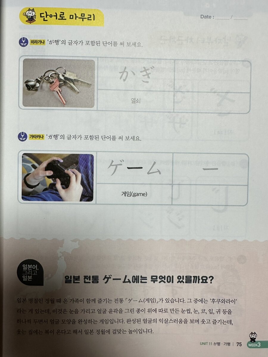 히라가나와 가타카나 학습은 일본어를 배우는 데 있어 기본이 되는 부분이다. 이 파트는 다양한 방법으로 낱자를 익히도록 한다. 첫 번째 단계에서는 각각의 글자를 차근차근 익히고, 필순에 맞춰 써보는 연습을 통해 자연스럽게 발음을 익힐 수 있도록 구성되어 있다. 이러한 기초적인 연습은 초보자에게 매우 중요하며, 글자를 정확히 쓰는 능력을 기르는 데 도움을 줄 것이다. 다음 단계에서는 행으로 묶어 글자를 연습한다. 이 과정은 히라가나와 가타카나를 동시에 익힐 수 있는 기회를 제공하며, 도형에 맞춰 올바르게 쓰는 연습을 통해 시각적인 기억을 도와줄 것이다. 이러한 행 연습은 학생들이 글자를 더 잘 인식하고 기억할 수 있도록 지원한다. 단어 학습으로 넘어가면, 배운 글자가 포함된 단어를 이미지와 함께 학습함으로써 자연스럽게 암기할 수 있는 기회를 제공한다. 이는 시각적 학습을 통해 기억력을 향상시키는 데 효과적일 것이다. 이어지는 부분에서는 일본어의 문법과 관련된 설명을 통해, 학생들이 배운 문자와 단어를 실제 상황에 적용할 수 있도록 돕는다. 마지막으로, 복습 단계에서는 각 유닛에서 익힌 내용을 직접 써보며 확인할 수 있는 기회를 제공한다. 이러한 반복 학습은 기억을 공고히 하고, 실력을 점검하는 데 큰 도움이 될 것이다. 또한, 일본 문화와 관련된 칼럼을 통해 학생들은 일본어에 대한 흥미를 유지할 수 있을 것이다.