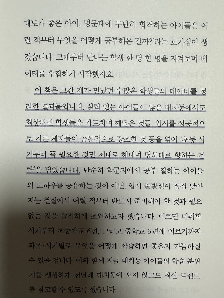 입시 코디네이터는 학생의 입시 전략을 세우고, 필요한 정보를 제공하는 전문가이다. 이번에 대치동에서의 많은 교육 경험을 바탕으로 대치동 아이들이 어떻게 공부를 하는지에 대해 종합적으로 분석하여 이야기 해 주는 신간을 읽을 기회가 있었다. 글로리아쌤의 <대치동 아이들은 이렇게 공부합니다>였다.