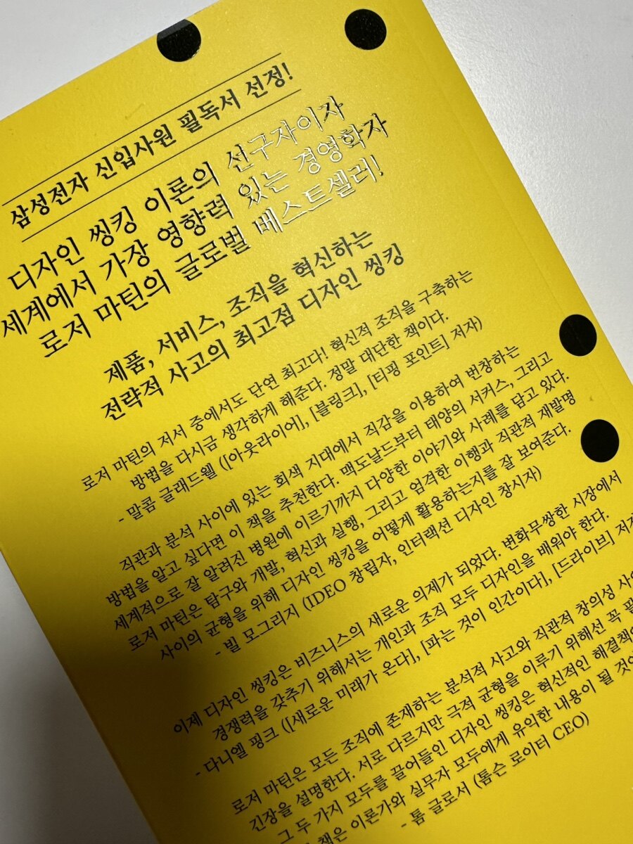 이 책은 혁신적인 비즈니스 모델을 구축하고자 하는 경영자, 기획자뿐만 아니라 창의적 문제 해결 능력을 키우고 싶은 모든 이들에게 유용할 것같다. 디자인 전공자는 물론, 조직 내에서 새로운 사고 방식을 도입하고자 하는 리더들에게도 필독서로 추천할 수 있을 것 같다. 로저 마틴의 깊이 있는 통찰과 다양한 실례들이 책에 담겨 있어, 디자인 씽킹을 실질적으로 적용할 수 있는 가이드로서 매우 유용할 것이다.