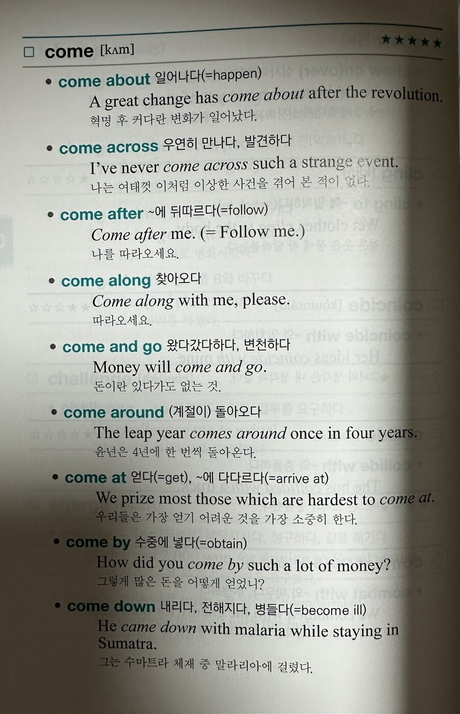 최근 영어 능력 평가 시험에서는 숙어의 출제가 증가하고 있다. 토익, 토플, 텝스와 같은 시험들은 단순히 문법과 단어의 암기를 넘어서, 언어를 실제로 사용할 수 있는 능력을 평가하는 데 중점을 두고 있다. 특히, 일상 대화나 비즈니스 환경에서 자주 사용되는 숙어는 수험생들이 자연스럽게 영어를 구사하는 데 큰 도움이 된다. 숙어의 학습이 중요한 이유는 먼저 숙어를 익히면 원어민과의 대화에서 자연스럽게 소통할 수 있다. 많은 경우, 원어민은 간단한 단어로 이루어진 숙어를 사용하여 의사를 전달하기 때문에, 이를 이해하지 못하면 대화의 흐름을 놓칠 수 있다. 숙어는 특정한 맥락에서만 의미를 가지므로, 이를 학습함으로써 다양한 상황에서의 언어 사용 능력이 향상된다. 즉, 문맥에 따라 적절한 표현을 선택할 수 있는 능력이 배양된다. 숙어는 여러 단어의 조합으로 이루어져 있지만, 이러한 조합을 암기함으로써 단어 하나하나를 외우는 것보다 더 효율적인 학습이 가능하다. 익숙한 단어들이 모여 새로운 의미를 생성하므로, 학습자는 더 적은 노력으로 더 많은 의미를 습득할 수 있다. 숙어를 잘 알고 사용할 수 있게 되면, 영어에 대한 자신감이 증가한다. 이는 영어를 사용하는 다양한 상황에서도 보다 적극적으로 참여할 수 있게 만든다. 숙어는 수험 영어에서는 빼놓을 수 없는 것으로 꾸준히 연습하여 자기의 것으로 만들어야 할 것이다.