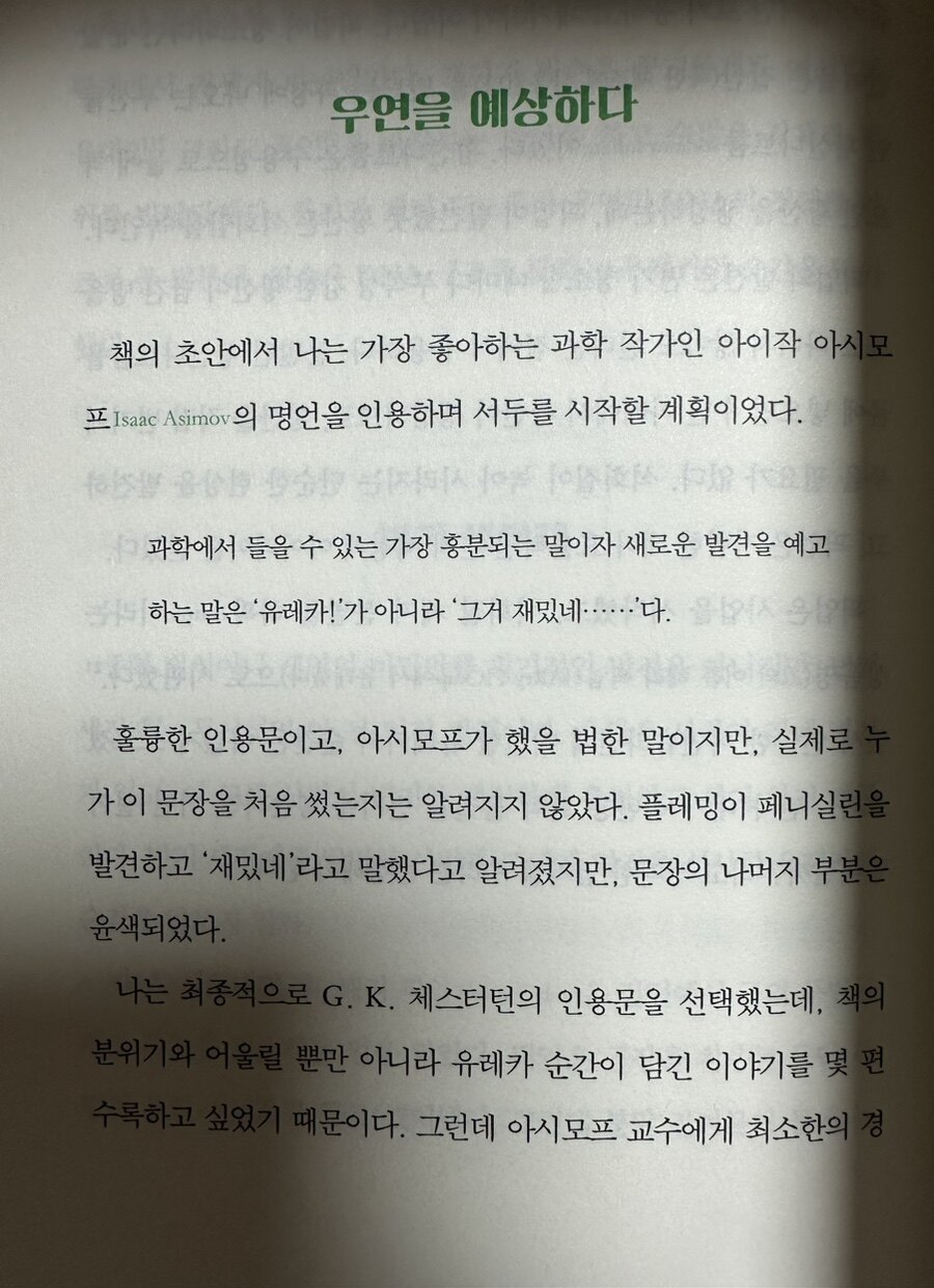 과학은 우리 삶의 모든 영역에 깊숙이 뿌리내리고 있으며, 인류의 발전과 함께 끊임없이 진화해왔다. 하지만 많은 사람들에게 과학은 여전히 어렵고 딱딱한 학문으로 인식되곤 한다. 이러한 인식은 과학의 진정한 매력을 가릴 뿐만 아니라, 차세대 과학자와 탐구자의 꿈을 꺾기도 한다. 재미있는 과학은 단순히 재미있는 사실이나 기발한 실험에 국한되지 않는다. 과학은 호기심과 탐구정신이 바탕이 되어야 하며, 이러한 요소들이 결합될 때 과학은 진정한 의미에서의 재미를 느낄 수 있게 될 것이다. 과학은 우리에게 질문을 던지고, 그 질문에 대한 답을 찾는 과정에서 발생하는 긴장감과 흥미를 제공한다. 예를 들어, 아르키메데스의 "유레카" 순간이나 뉴턴의 사과 이야기처럼, 과학적 발견은 종종 일상적인 경험 속에서 비롯되며, 이러한 순간들이 바로 과학의 매력을 극대화하는 요소들이다. 과학이 재미있어야 하는 이유는 사람들의 사고방식을 변화시키고, 창의력을 자극하며, 나아가 삶의 질을 향상시키는 데 기여하기 때문이다. 과학이 재미있어질 때, 우리는 단순한 수치와 공식의 나열에 그치지 않고, 과학의 경이로움과 가능성을 발견하게 될 것이다. 이런 측면에서 팀 제임스의 과학 시리즈는 우리에게 많은 호기심을 해결해 주고 과학에 좀 더 쉽게 다가가게 한다. 이번에 또 하나의 신간을 읽을 기회가 있었다. 팀 제임스의 <뜻밖의 과학사>였다.