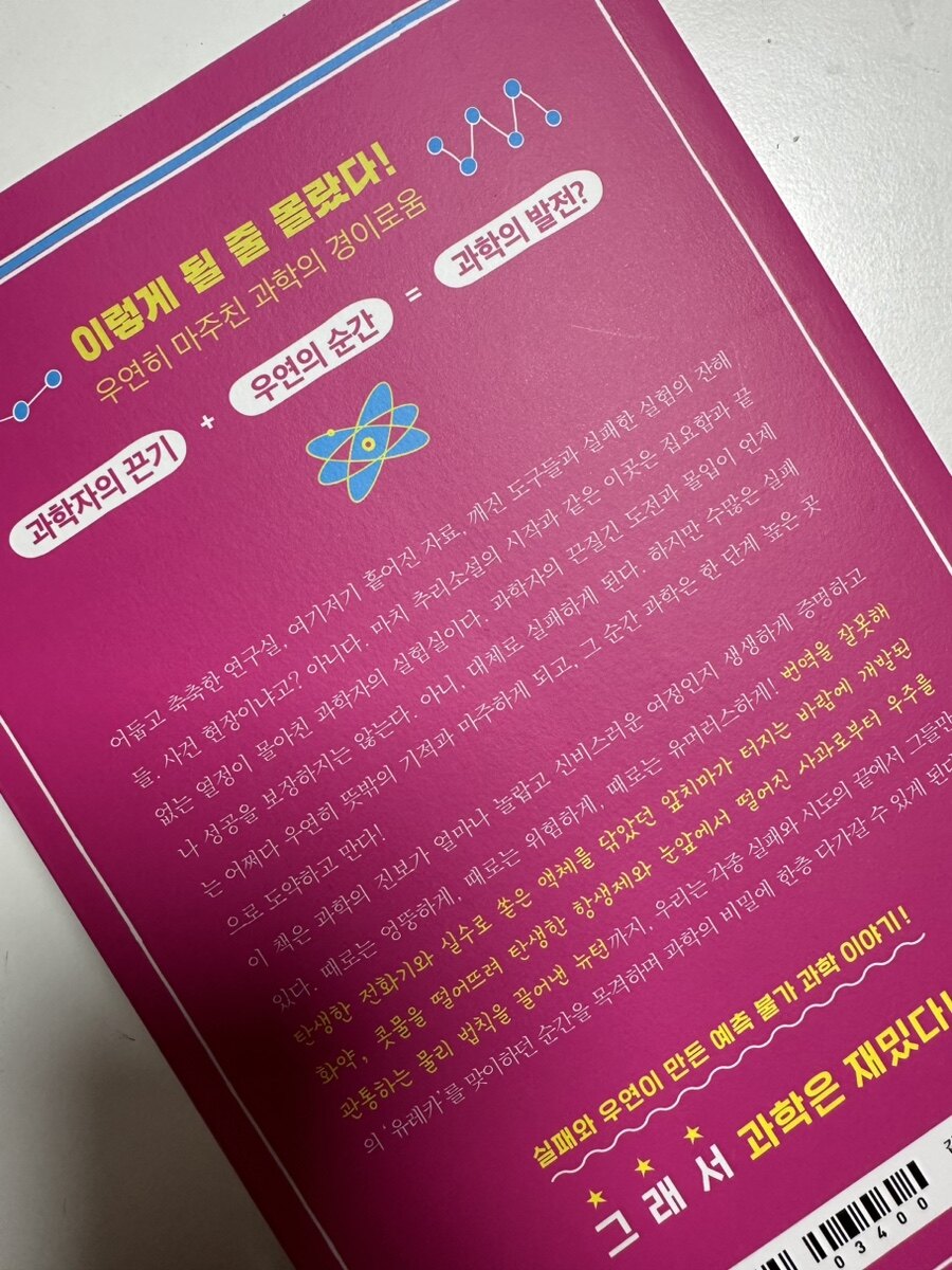 『뜻밖의 과학사』는 과학의 역사와 발견 과정에서의 우연과 실수를 통해 새로운 지식과 물질이 어떻게 탄생했는지를 탐구하는 흥미로운 책이다. 이 책은 크게 네 개의 장으로 나뉘어 있으며, 각 장은 과학적 발견의 다양한 측면을 다루고 있다. 이를 통해 저자는 과학이 단순히 체계적이고 계획적인 과정이 아닌, 때로는 우연한 사건과 실수의 연속임을 강조한다. 첫 번째 장인 '서투름'에서는 과학자들이 실험 과정에서 범했던 실수와 미숙함을 다룬다. 현대 과학의 관점에서는 이해하기 어려운 실험적 오류나 서로 결합해서는 안 될 물질을 잘못 혼합함으로써 새로운 물질이나 물리 현상이 발견되는 사례를 소개한다. 이러한 서투름은 과학적 과정에서 필연적으로 발생하는 부분이며, 이를 통해 우리는 과학의 발전이 얼마나 비약적이고 우연적인지를 알 수 있다. 실수는 종종 예상치 못한 결과를 초래하며, 이는 과학의 새로운 길을 열어주는 중요한 역할을 한다. 두 번째 장인 '불운과 실패'는 과학자들이 경험한 신체적 손상이나 실패의 순간들이 어떻게 의외의 성공으로 이어질 수 있었는지를 다룬다. 여기서는 부상이나 실패로 인한 고통이 새로운 발견으로 이어진 사례들이 소개된다. 예를 들어, 어떤 실험이 실패로 간주되었지만, 그 과정에서 얻어진 데이터나 교훈이 나중에 다른 분야에서 혁신적인 결과를 낳는 데 기여한 경우가 많다. 이를 통해 저자는 실패가 단순한 패배가 아니라, 새로운 가능성을 여는 중요한 발판이 될 수 있음을 강조한다.