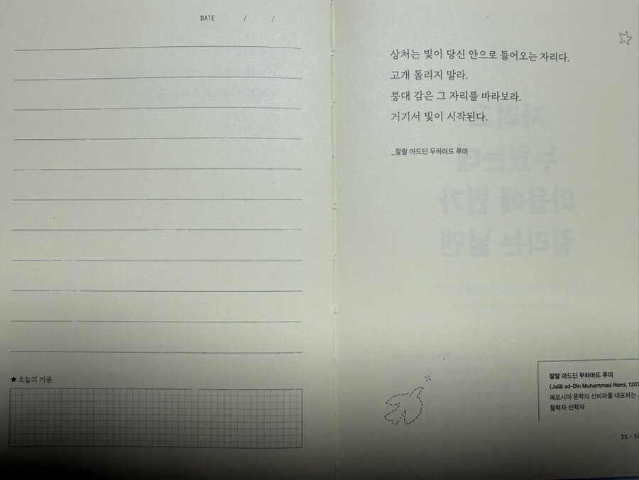 왼손 필사는 결과가 아니라 과정이다. 얼마나 예쁜 글씨를 쓰느냐가 중요한 것이 아니라, 그 시간 동안 얼마나 현재에 머물렀는가, 얼마나 나 자신과 대화했는가가 중요하다. 완성된 페이지를 채우는 것도 의미 있지만, 더 중요한 것은 그 과정에서 느낀 평온함, 마주한 나 자신의 모습, 발견한 내면의 소리다. 어쩌면 우리 모두에게 필요한 것은 의도적으로 느려지는 시간이 아닐까. 모든 것이 빠르게 돌아가는 세상에서, 일부러 속도를 늦추고 불편함을 선택하는 용기. 왼손 필사는 그런 작은 실천이다. 큰 결심이나 거창한 준비가 필요하지 않다