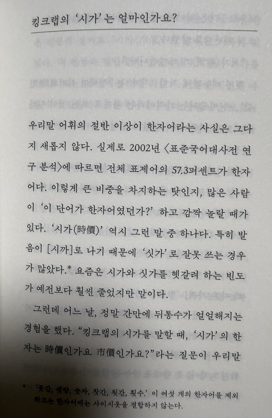 '아밀라아제'가 '아밀레이스'로 바뀐 이야기는 특히 인상적이다. 수십 년간 교과서에 실렸던 단어가 일제강점기의 흔적이었다는 사실, 그리고 그것이 어느 날 조용히 교체되었다는 사실. 그것을 모르는 세대와 아는 세대 사이에 자연스럽게 세대 차이가 생겼다. 언어는 이처럼 시간과 역사를 품고 흐른다. 우리가 당연하다고 여기는 표현 하나에도 오랜 시간의 켜가 쌓여 있다. 언어를 규범으로만 보면 이 두께를 느끼기 어렵다. '짜장면'과 '자장면'이 함께 표준어가 된 이후에도, 국립국어원 사람들끼리 밥을 먹으러 가면 절반은 자장면을, 절반은 짜장면을 시킨다는 이야기도 그렇다. 표준어 결정이 사람들의 언어 습관을 하루아침에 바꾸지는 못한다. 언어는 규범보다 먼저 삶 속에 있기 때문이다. 사람들은 규정이 정해지기 전부터 이미 말하고 있었고, 규정이 바뀐 후에도 몸에 익은 말을 쉽게 놓지 못한다. 이것은 언어의 특성인 동시에, 언어와 인간의 관계를 보여주는 장면이다.