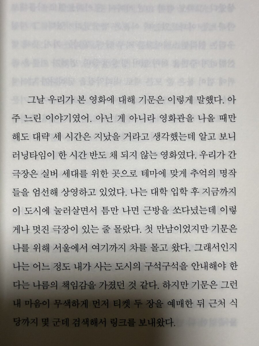 우리는 지금 관계의 효율을 따지는 시대를 살고 있다. 이 관계가 나에게 무엇을 줄 수 있는가. 이 사람과 함께하는 것이 나의 성장에 도움이 되는가. 피로하고 소진되는 관계라면 과감히 정리하라고 조언하는 목소리들이 넘쳐난다. 그 조언들이 틀린 것은 아니다. 우리에게는 자신을 지킬 권리가 있다. 하지만 예소연은 그 조언이 닿지 않는 자리를 비춘다. 정리해야 마땅한 관계인데 정리가 안 되는 사람들. 아무 사이가 아닌데 아무 사이가 아닐 수 없는 사람들. 선이에게 기문이 그렇고, 희지에게 두부 할머니가 그렇고, 유선에게 여사가 그렇다. 이 인물들이 비합리적이거나 미숙해서가 아니다. 삶이 원래 그렇게 생겨먹었기 때문이다. 인간은 어느 순간 불가피하게 타인에게 엮인다. 그리고 그 엮임 안에서, 아주 작고 의도치 않은 방식으로, 서로를 살아남게 한다.
