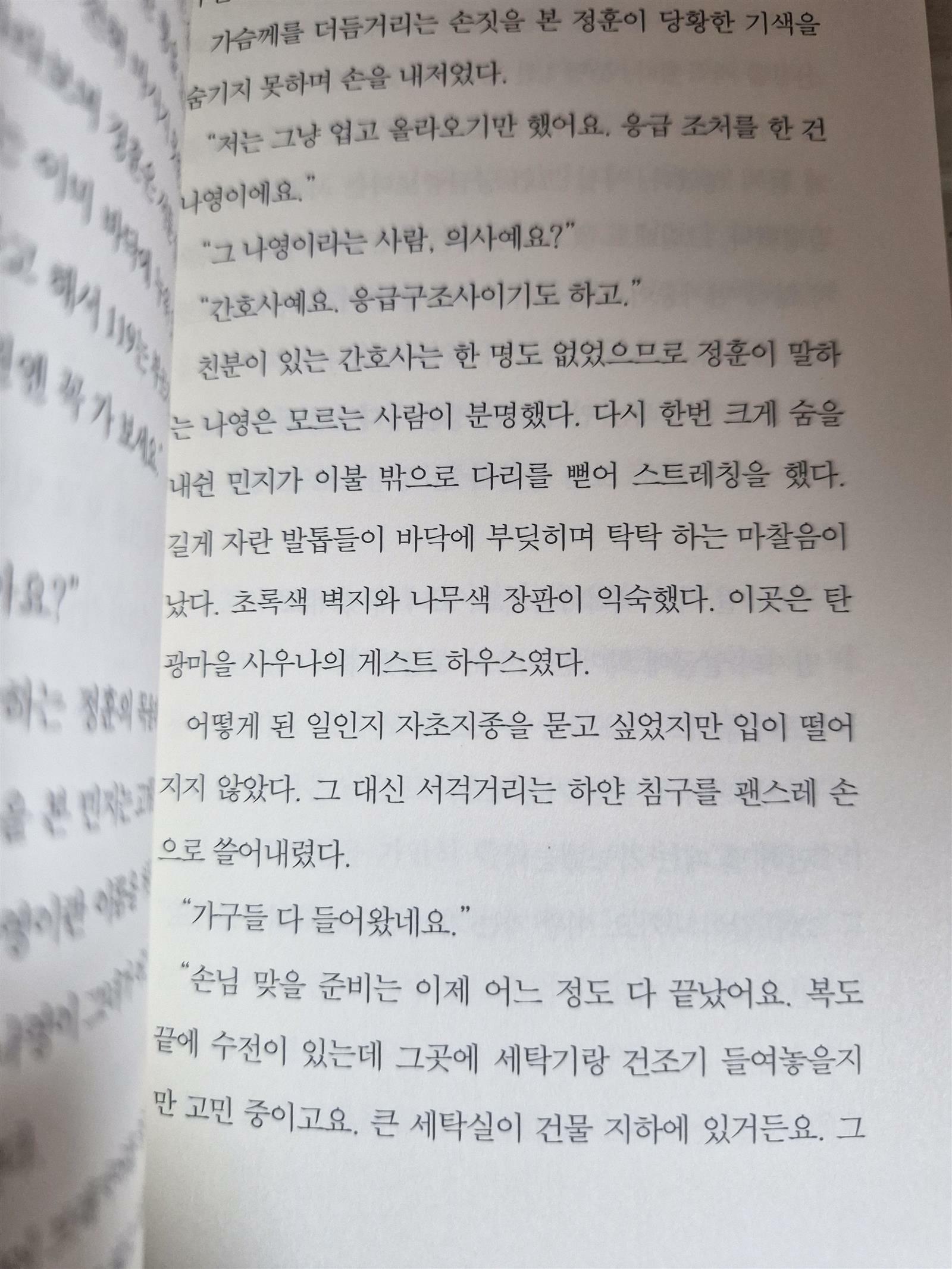 작가는 상처와 외로움을 품은 인물들을 따뜻한 시선으로 바라보며, 각자의 사연이 사우나의 김처럼 천천히 피어오르게 합니다. 그 과정에서 저 또한 누군가의 이야기를 엿듣는 손님이 되었다가, 어느새 자신의 마음을 들여다보는 사람이 됩니다. 특히 일상에 지쳐 굳어버린 감정들을 조심스레 풀어주는 문장들은, 마치 따뜻한 물에 몸을 담근 듯 긴장을 내려놓게 합니다. 현실의 무게를 외면하지 않으면서도, 끝내 희망의 불씨를 건네는 서사는 잔잔하지만 깊은 여운을 남깁니다.