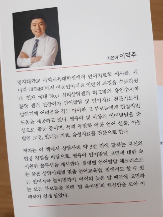 저자 이덕주 원장은 국내 최고의 심리상담센터"허그맘" 의 언어 치료사 입니다.