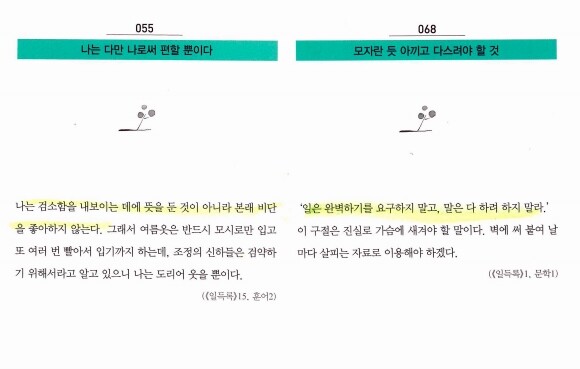손 닿는 데로, 틈날 때마다 한꼭지씩 읽고 되새김질하듯 몇 번이고 그 문장을 읽으니 좀 더 와닿음이 컸던 것 같다.