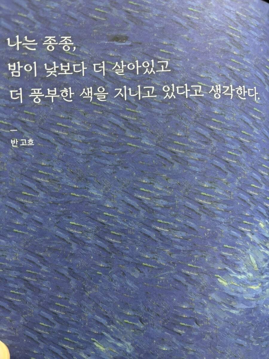 이 책에 또한 마음에 드는 부분은 명언과 같은 글이다.화가가 직접 그 그림에 대한 마음을 담은 한 줄의 글은 나의 마음에 진짜 와닿았다.