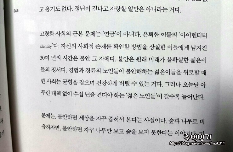 은퇴한 후에 시작될 또 다른 삶에 대해 아주 심각하게 고민해야 한다. 쥐꼬리만 한 연금을 받아가며 그렇게 주저앉아 늙어갈 수는 없는
