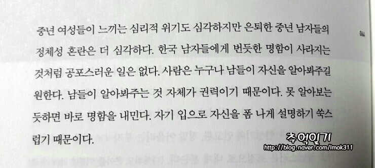 은퇴 이후 중년 남자들의 정체성에 대한 문제일