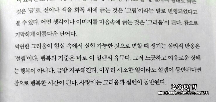 되고, 마음에 그리면 그리움이 된다. 고마움과 감사함은 그리움의 방법론이다. 고맙고 감사한 기억이 있어야 그리움도 생기는 거다. 분노와 원망으로