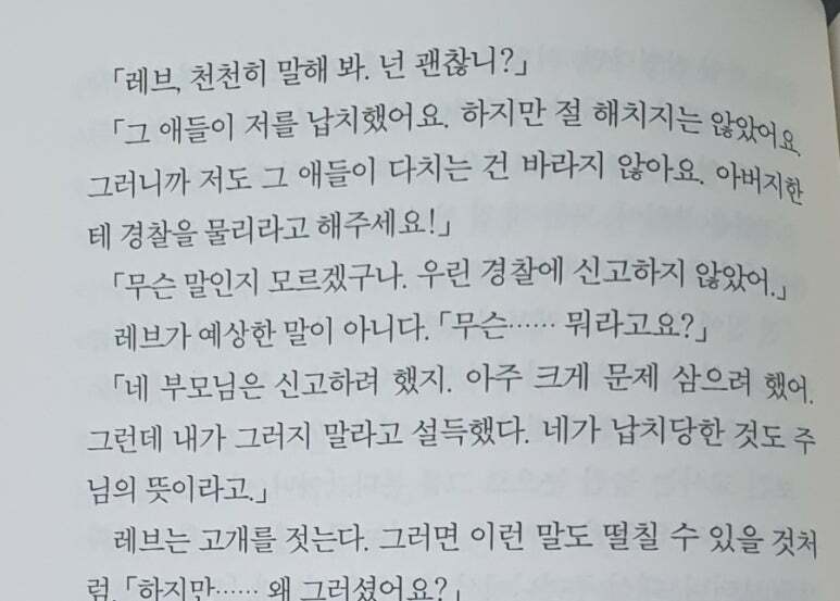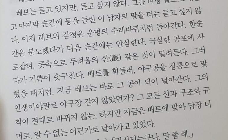 입에 담을 수 없는 잔혹하면서도 억울함 등 온갖 감정들 즉 감정 기복이 심해지는 작품을 읽는 동안 깨닮게 되었고, 더 이상 이 저자의 작품을 만나고 싶지 않다는 생각이 들었다.