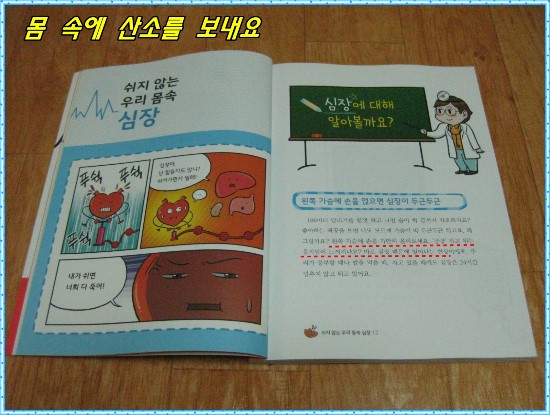 1장에서는 쉬지 않고 일하는 우리 몸속의 심장과 숨을 쉬는 허파에 대해서 나와여