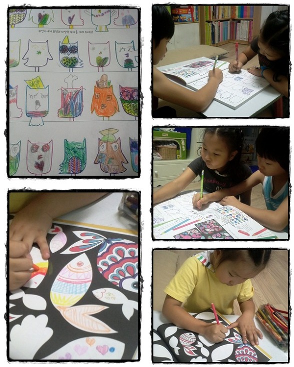 그림이 다채워져 있는게 아니니 서툰 솜씨나마 아이들은 열심히 적당한 그림을 끄적거린다.