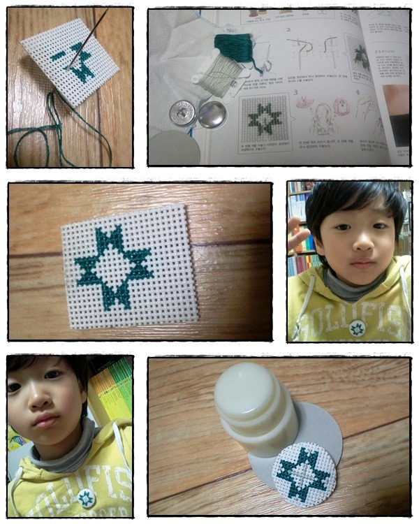 싸개단추 브로치 , 목걸이를 자기도 만들어 보고 싶다는 아들녀석을 겨우 말려서 뚱해 있는데 다음에는 어설프더라도