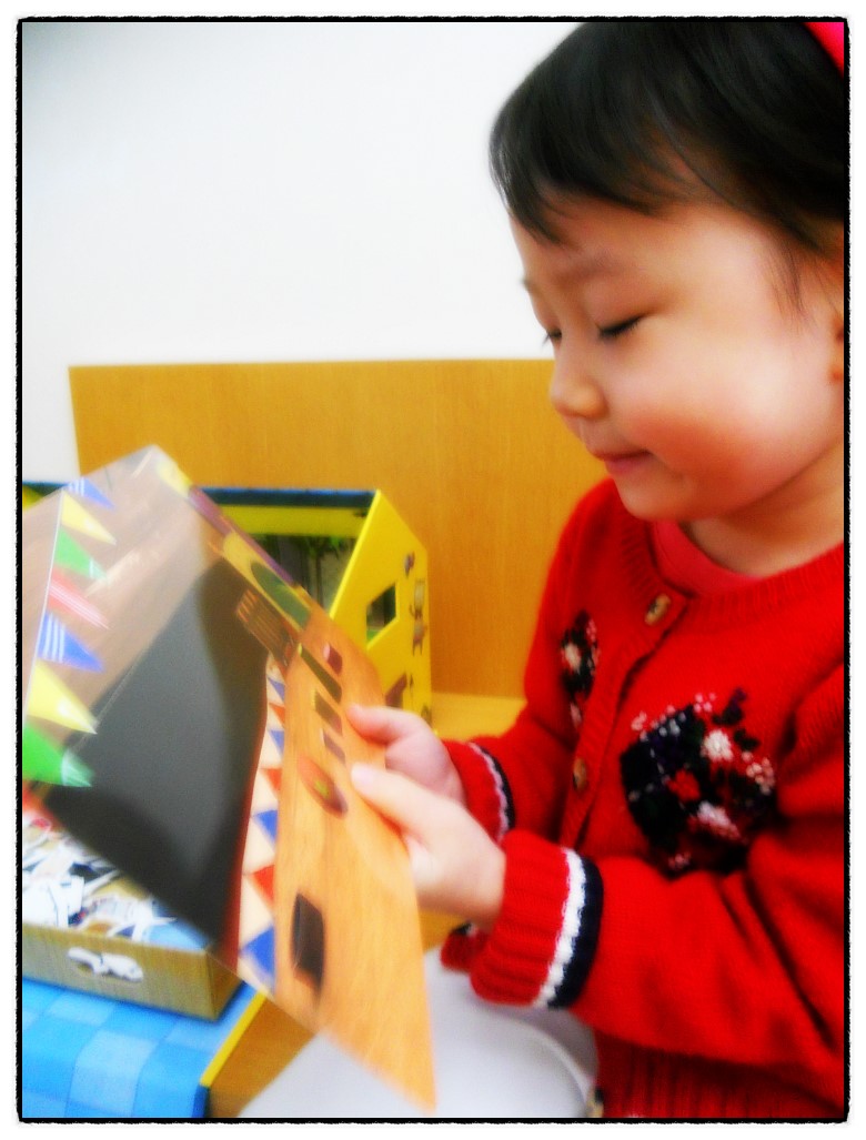 구름빵 이야기극장을 가지고 노는 울아이의 행복한 표정