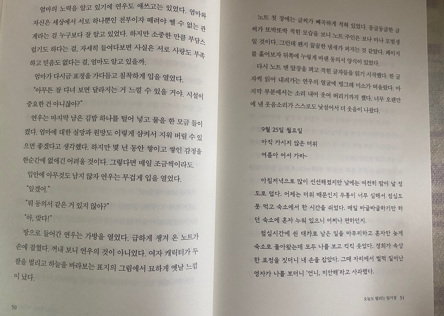 연우는 그 일기를 읽으며, 자신이 얼마나 쉽게 타인을 오해하고 상처 주었는지 돌아보게 돼요.